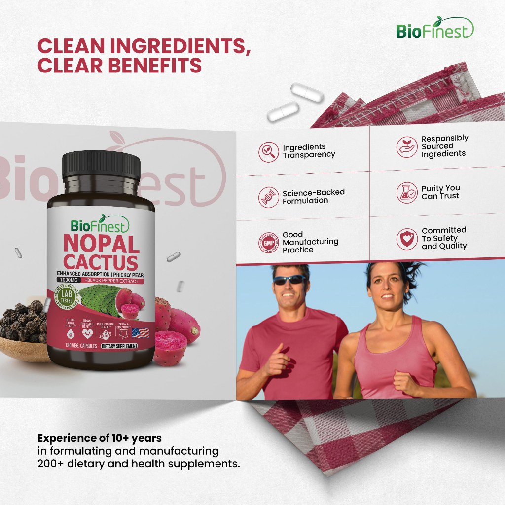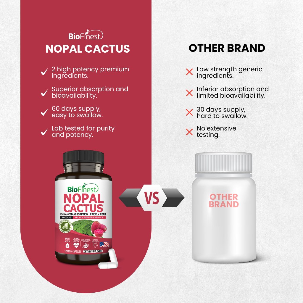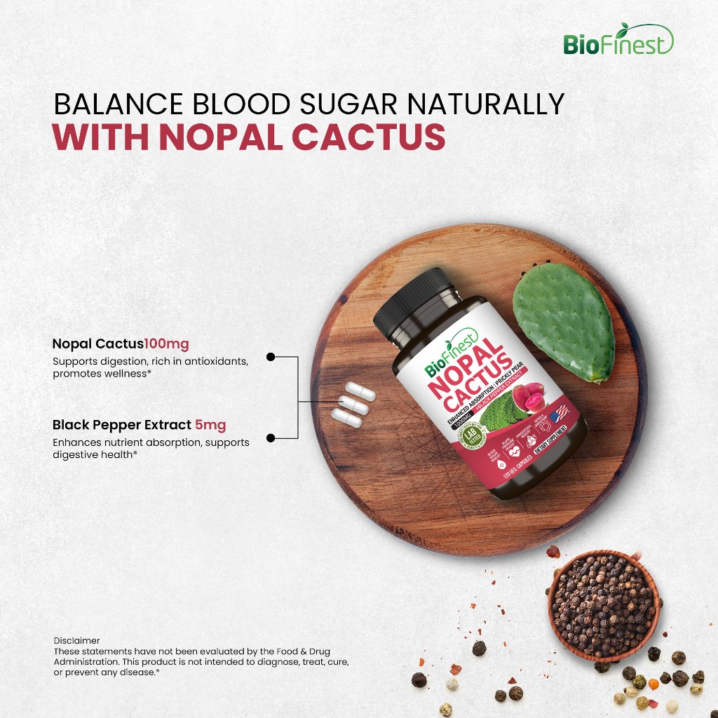 Biofinest Nopal Cactus 1000mg Supplement Prickly Pear Digestion Weight Loss Diabetes Blood Sugar Cholesterol Detox(120s)