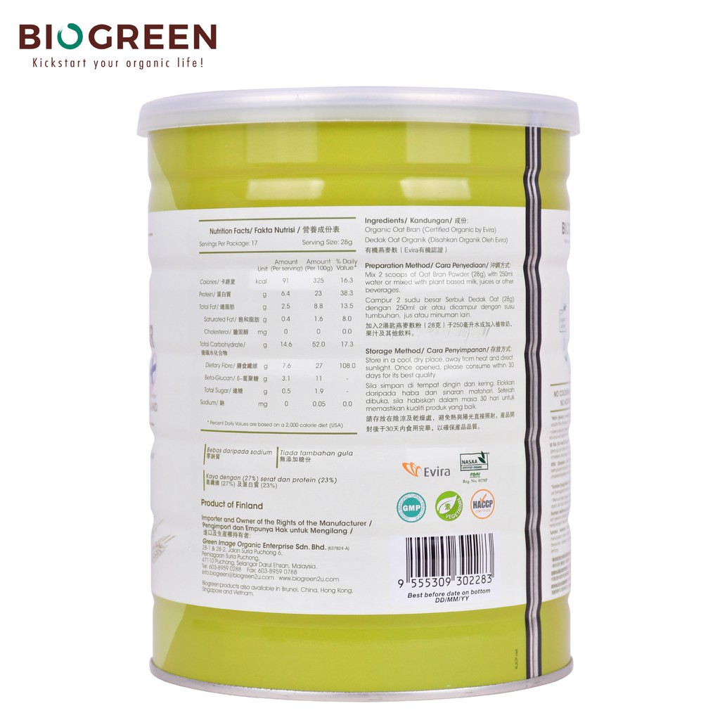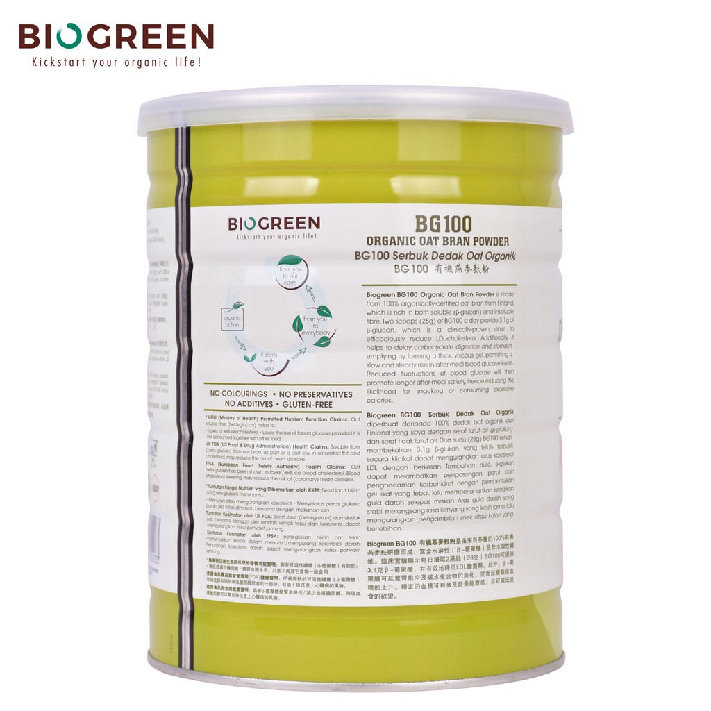 Biogreen BG100 Organic Oat Bran Powder [Beta Glucan/ High Fibre/ Lowering 3 Highs/ Optimising Health]