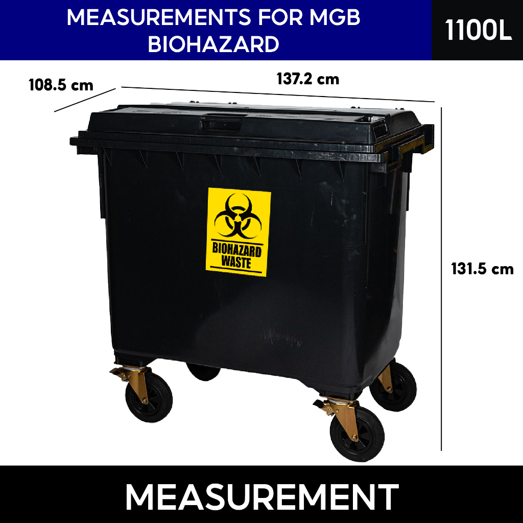 Biohazard Mobile Garbage Bin | 660L, 1100L | Trash Bin | Waste Bin | Medical Bin | Multisize
