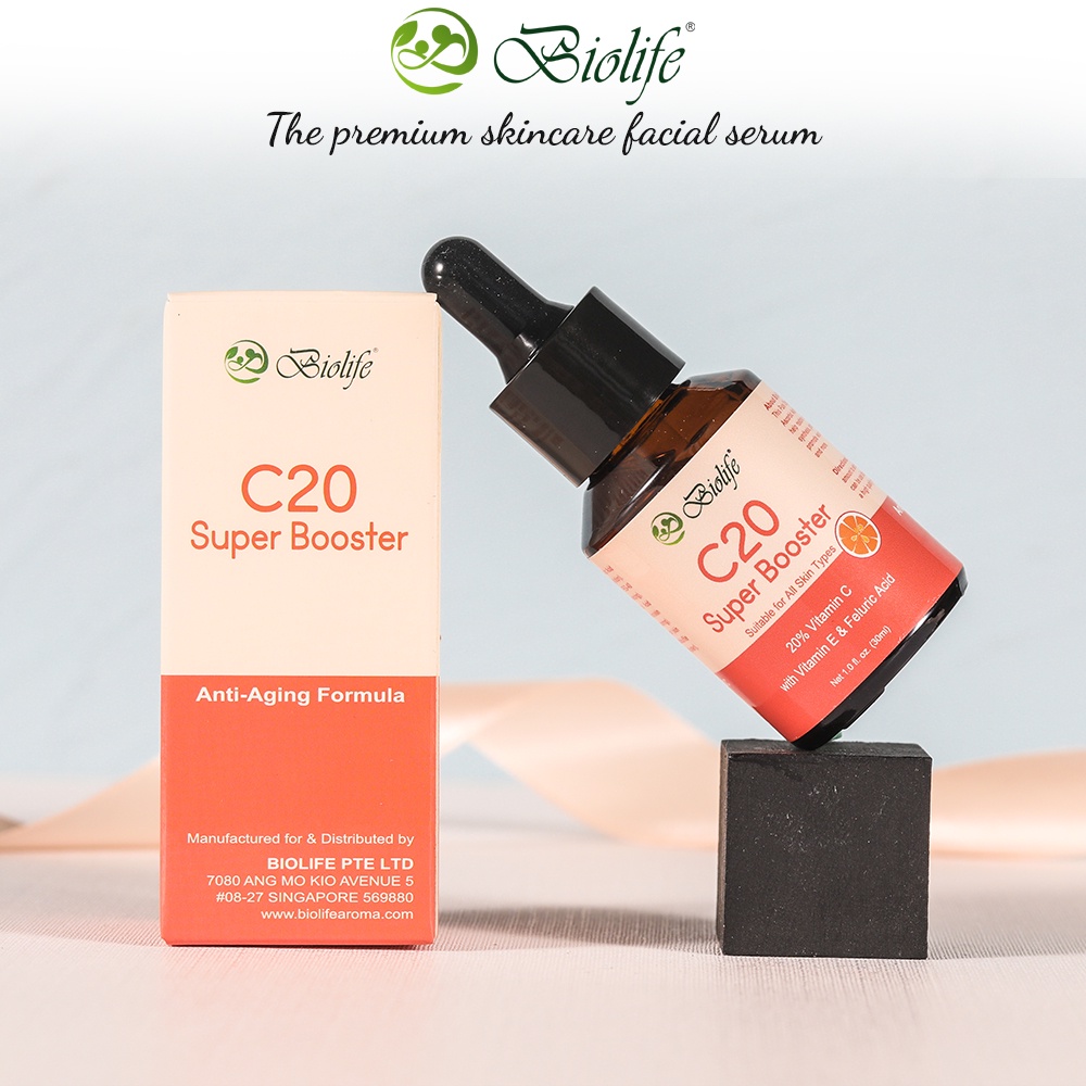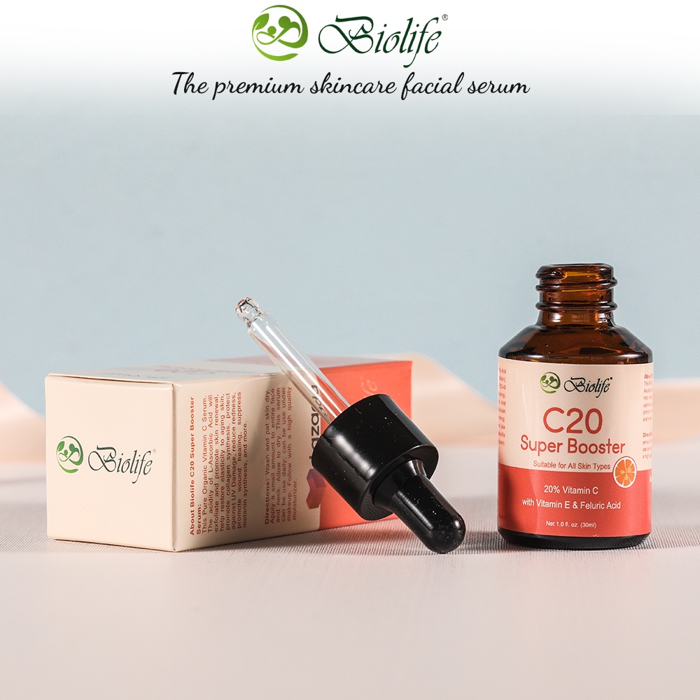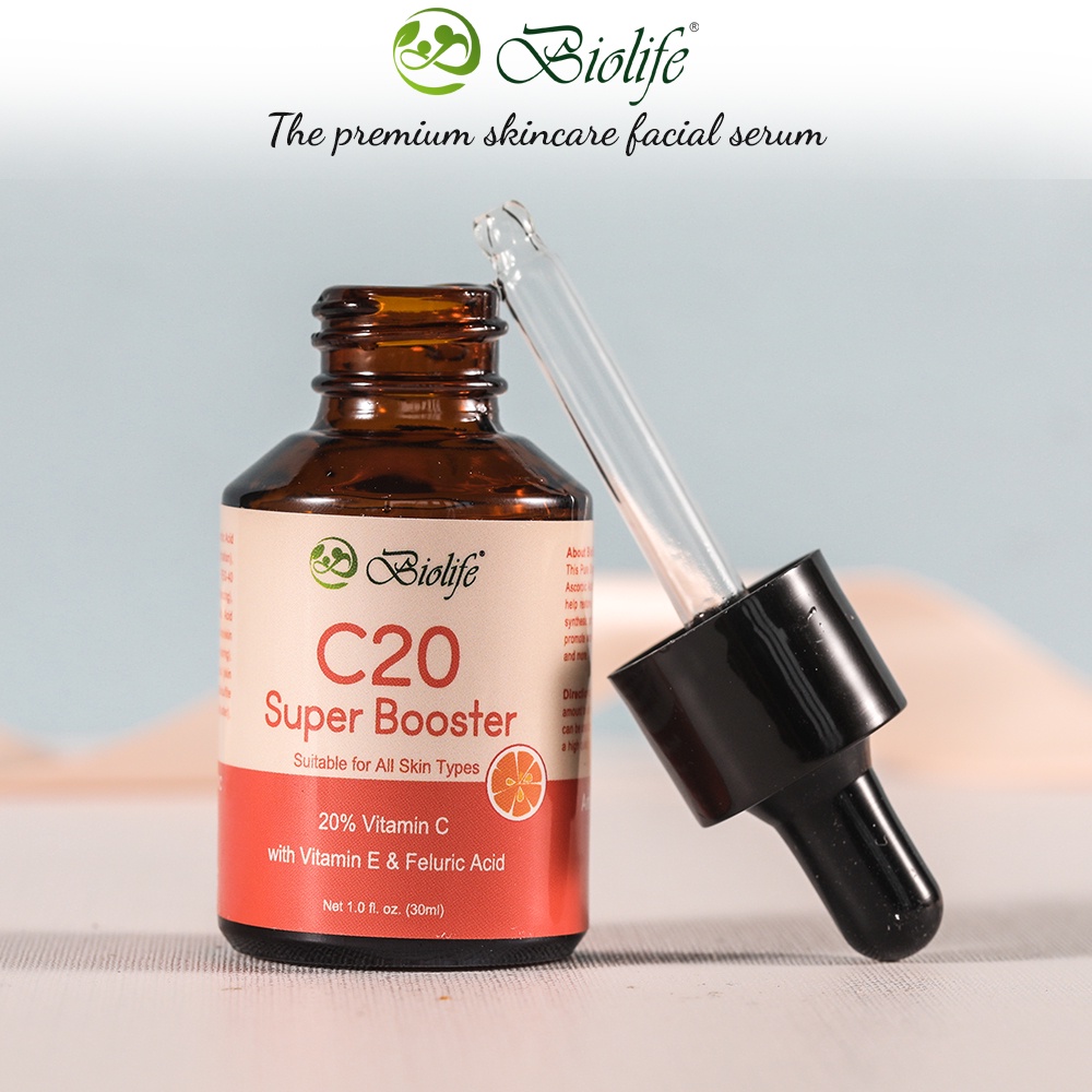 Biolife C20 Super Booster Face Serum, 20% Vitamin C with Vitamin E & Ferulic Acid, Skin Brightening Serum - 30ml
