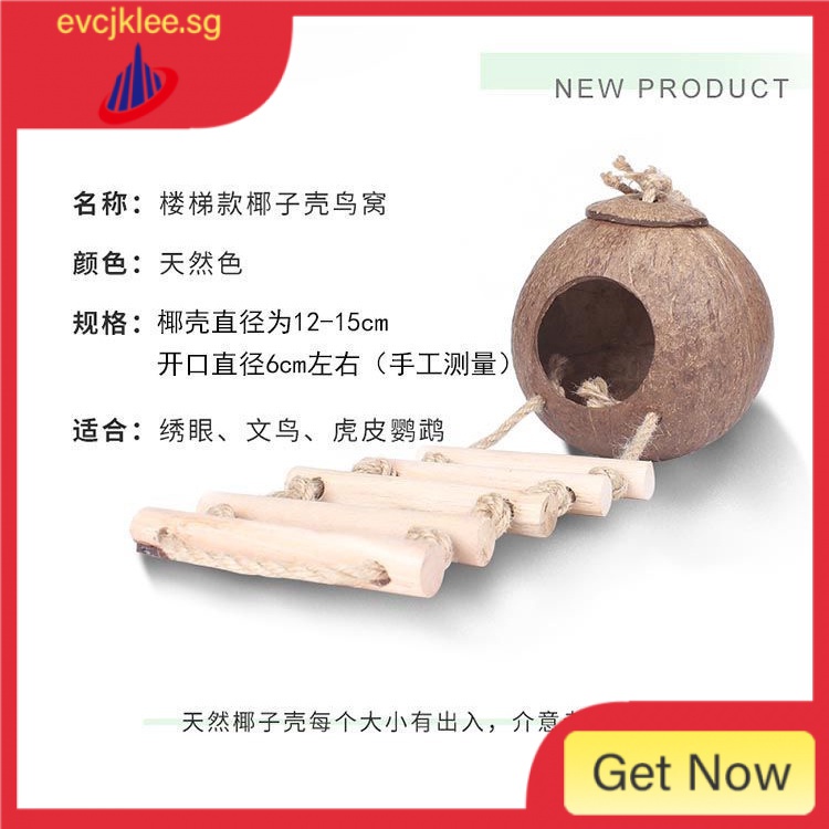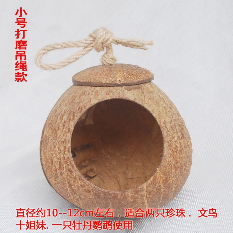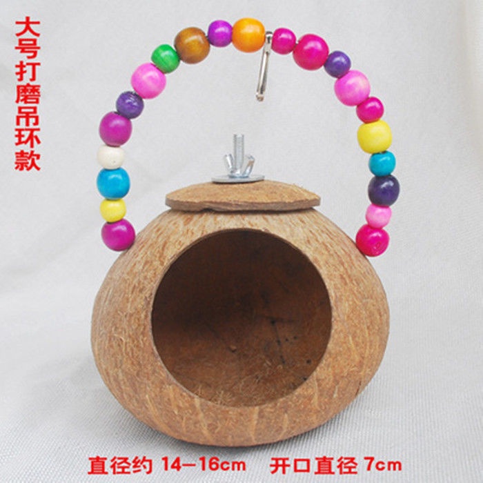 Birds Coconut Shell Breeding Nest Parrots Hamster Climb Ladder Swing Hanging Toy / Tiger Skin Pearl Finch Peony Parrot Bird Nest Coconut Shell Charcoal Nest Pure Natural Warm Bird