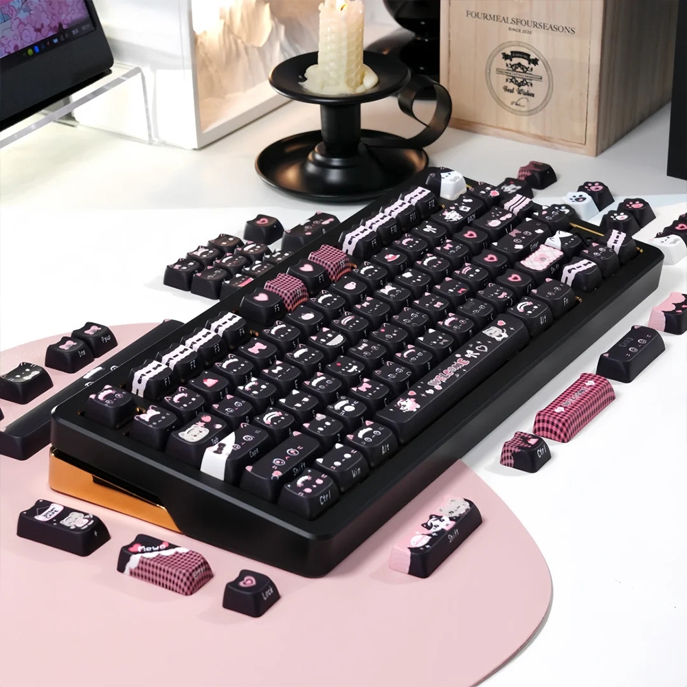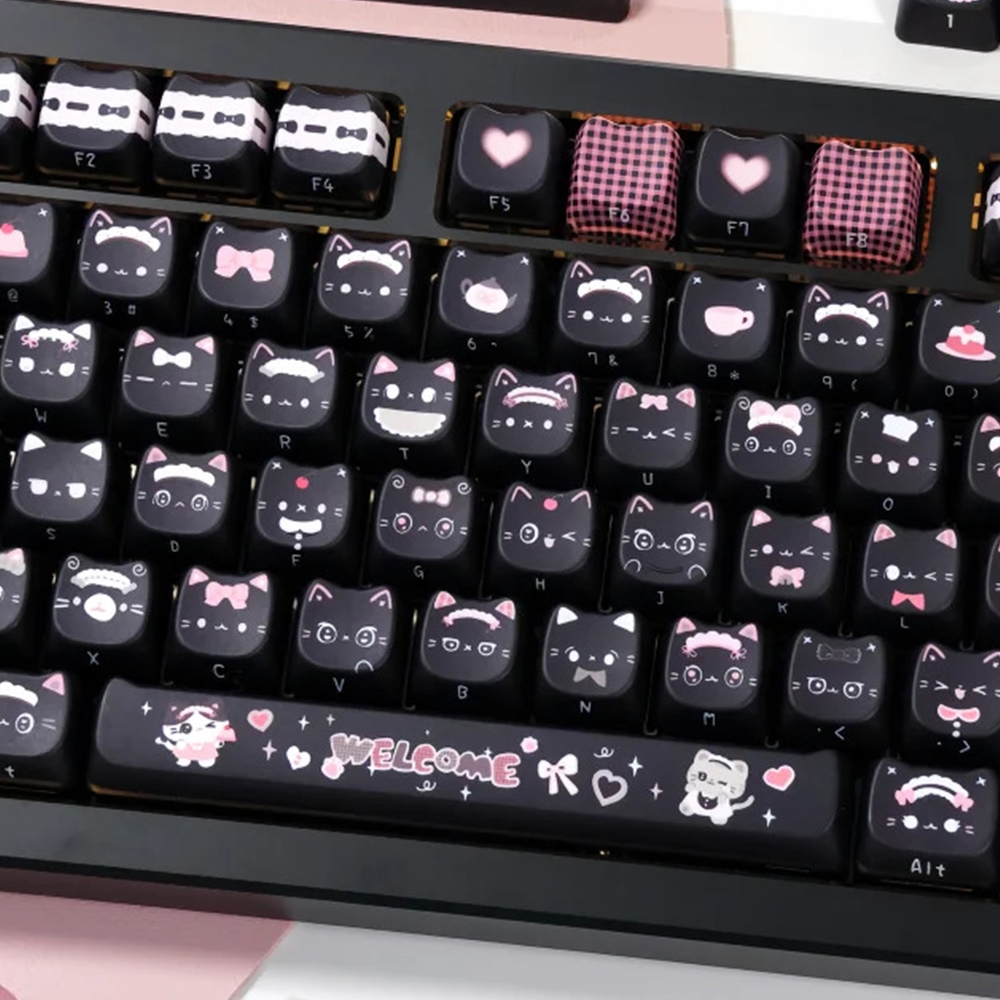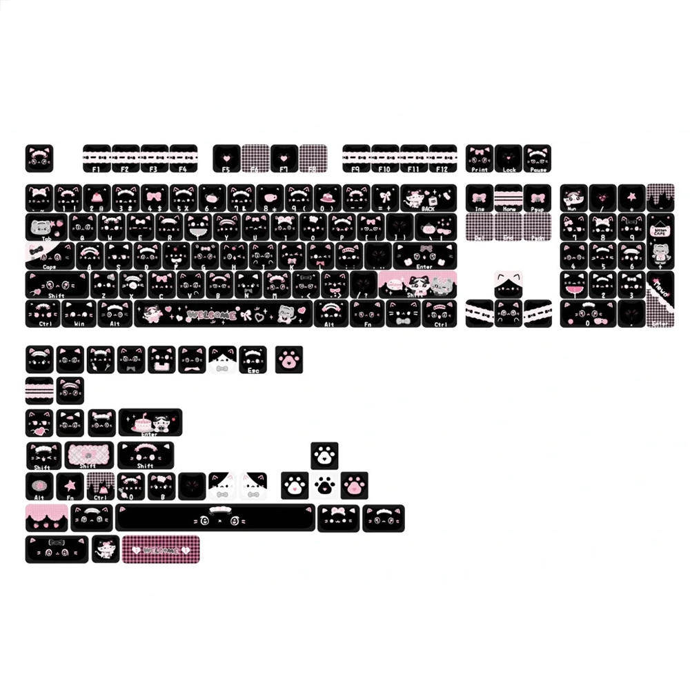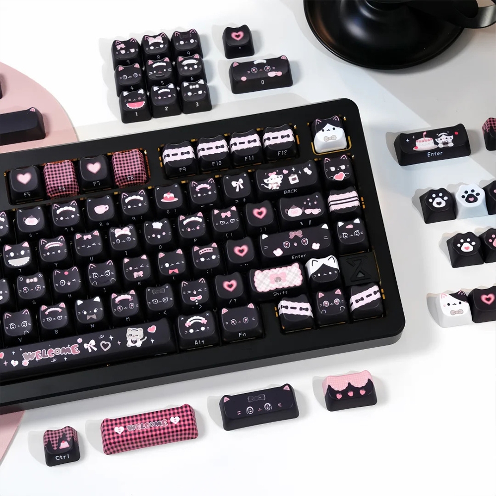 Black Cat Keycaps MAO Profile Five Sides Sublimation Side Engraved Letter MX Switch Mechanical Keyboard Keycaps Siamese Three Felinae Cat Paw Cute Kitten Keycaps