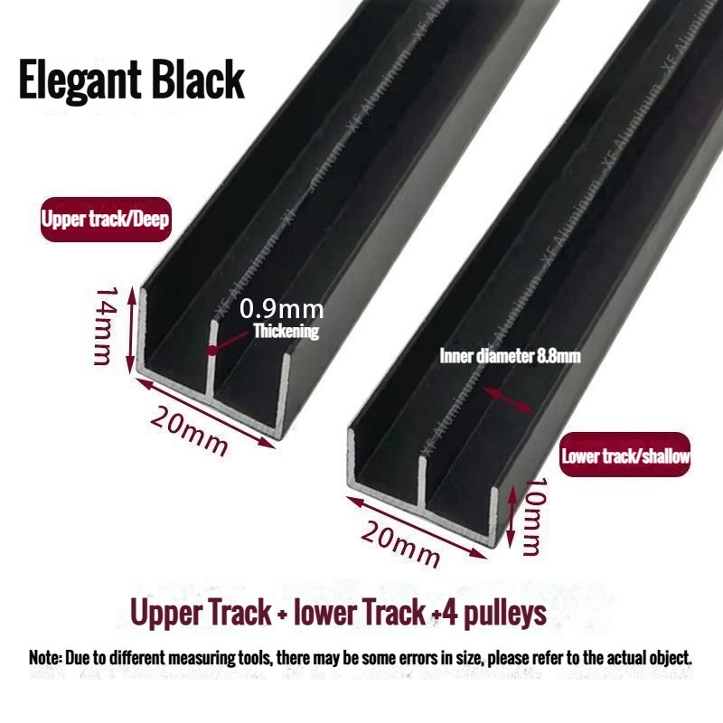Black Display Cabinet Glass Door Track Double Track Cabinet Sliding Door Mountain Shape Sliding Chute Guide Rail of the Movable Door Pulley Accessories