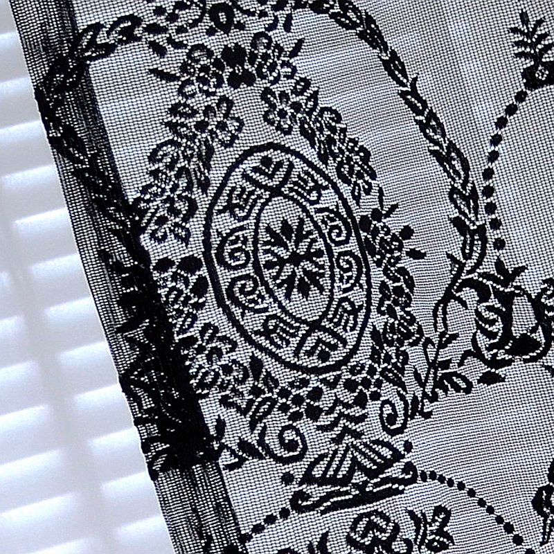 Black Lace Curtains for Bedroom Vintage French Floral Embroidered Sheer Voile Durable Rose Lace Fabric Curtain Drapes for Kids Room