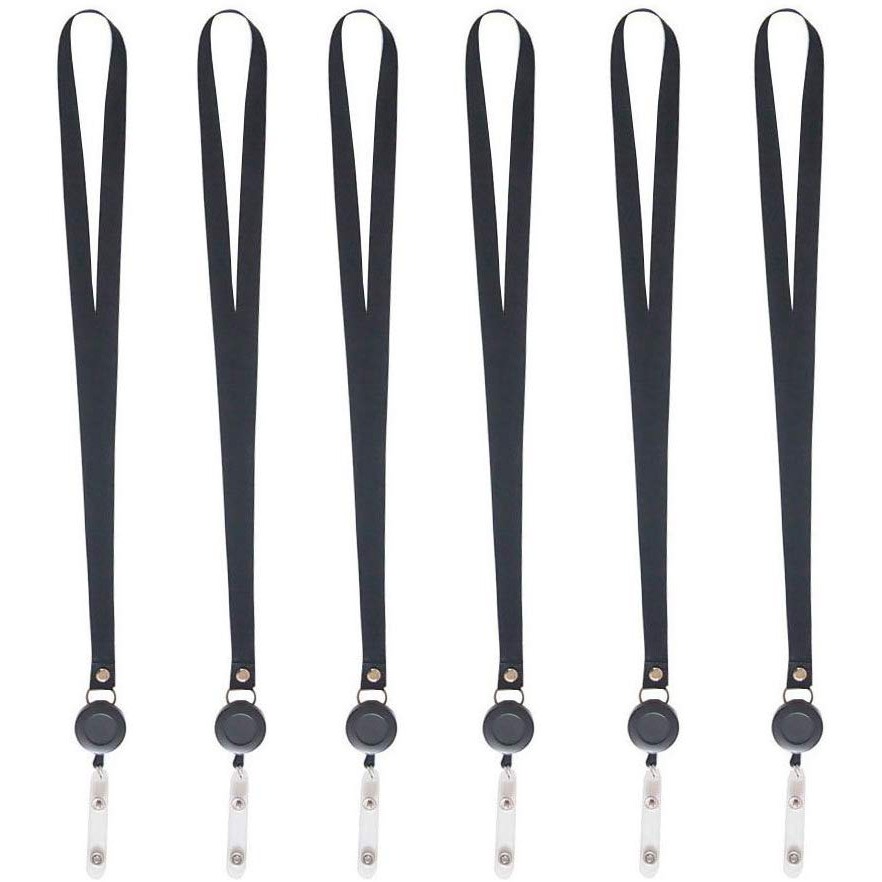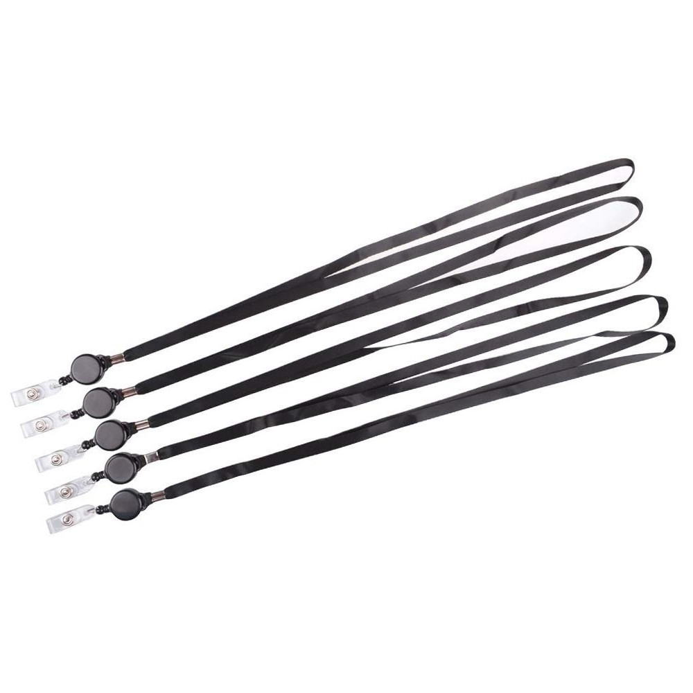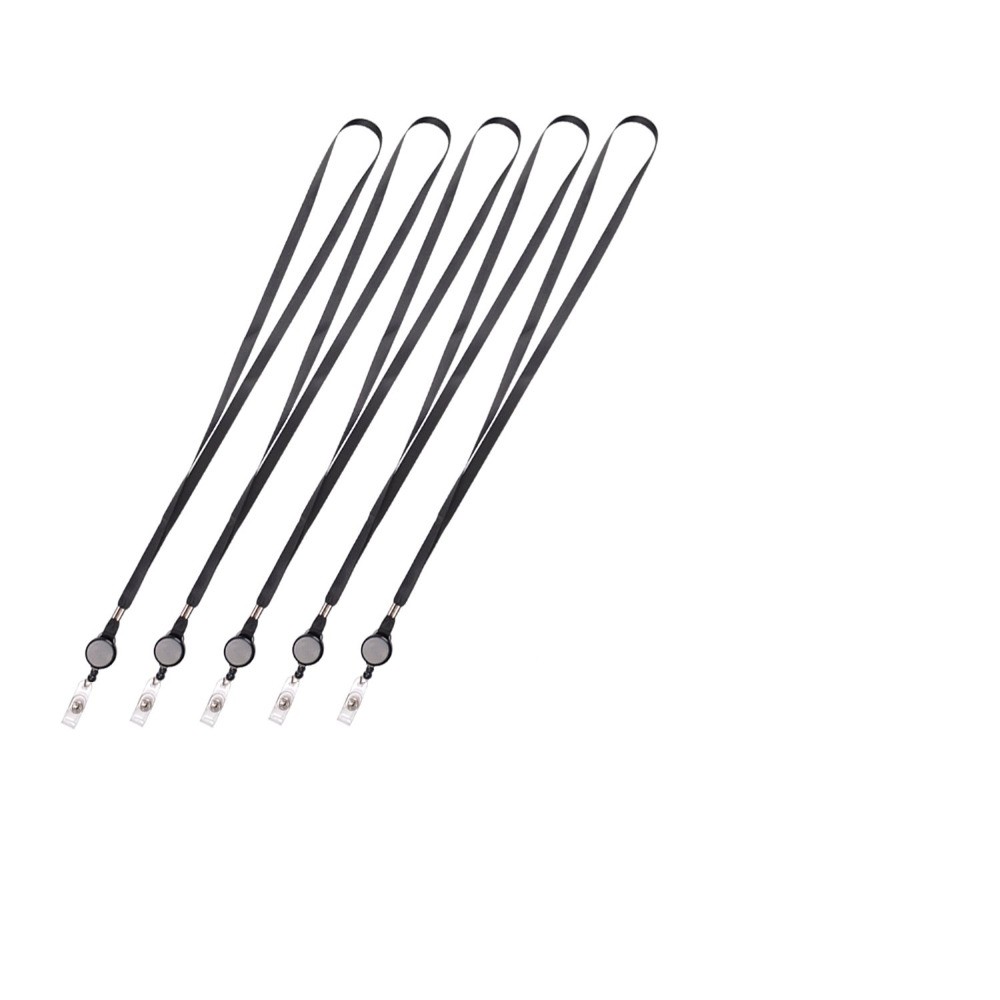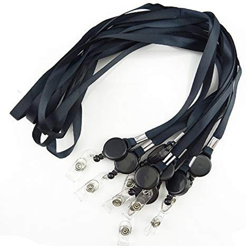 Black Retractable Lanyard Neck Strap Band Business ID Badge Card Hold Strap Reel Key Chain Reel With Lanyard Neck Strap