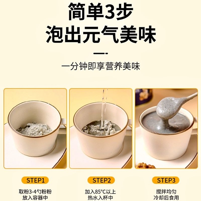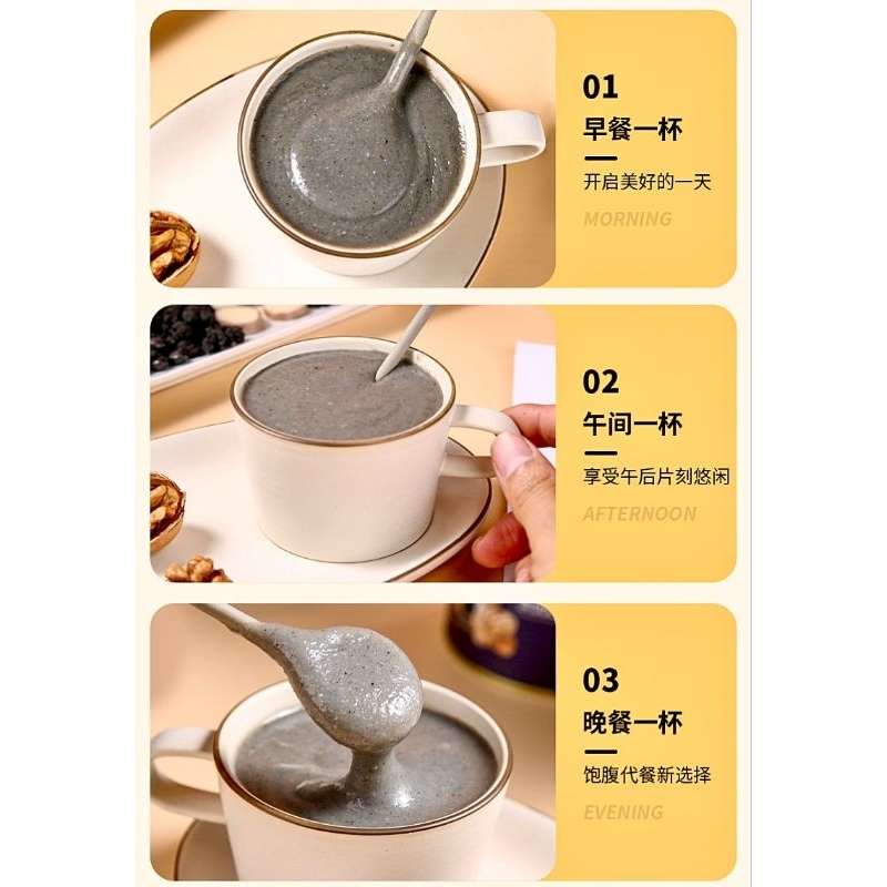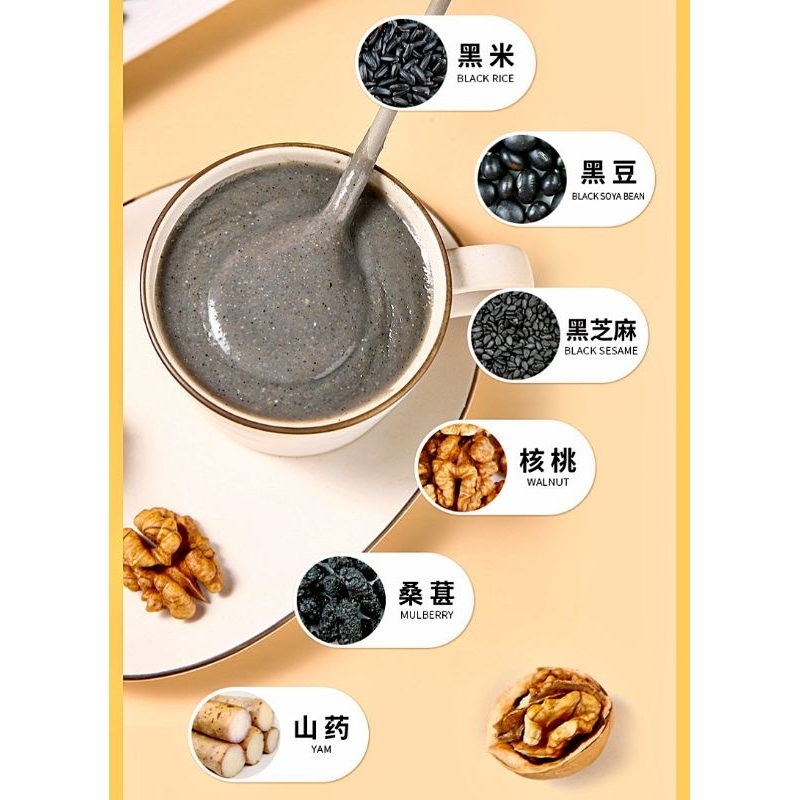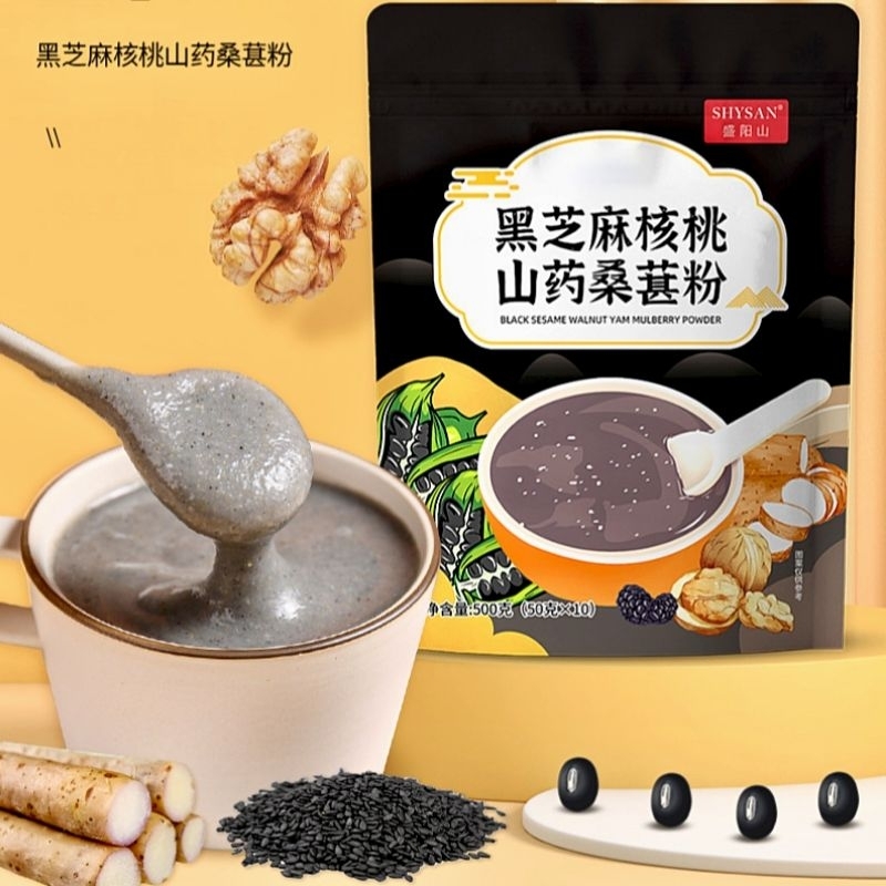 Black Sesame Walnut Yam Mulberry Powder Sugar-Free Meal Replacement Powder Individually Packaged No Sugar Black Sesame Walnut Yam Mulberry Powder 500g (50g x 10 Sachets)