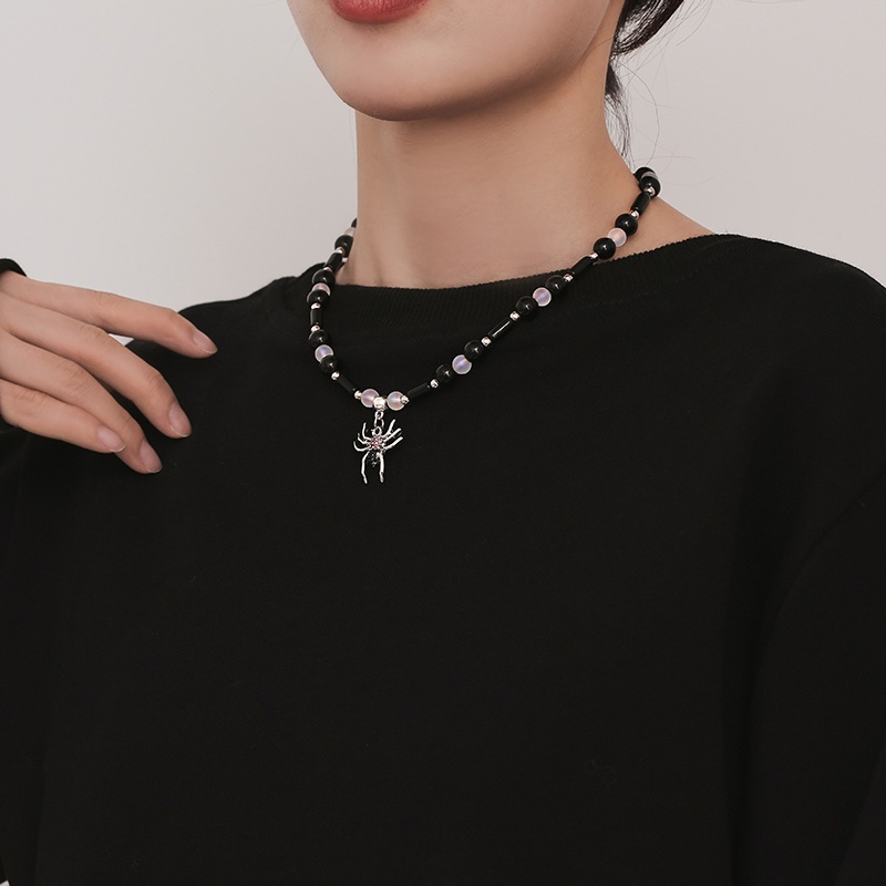 Black Spider Pendant Necklace Hip Hop Fashion Jewelry