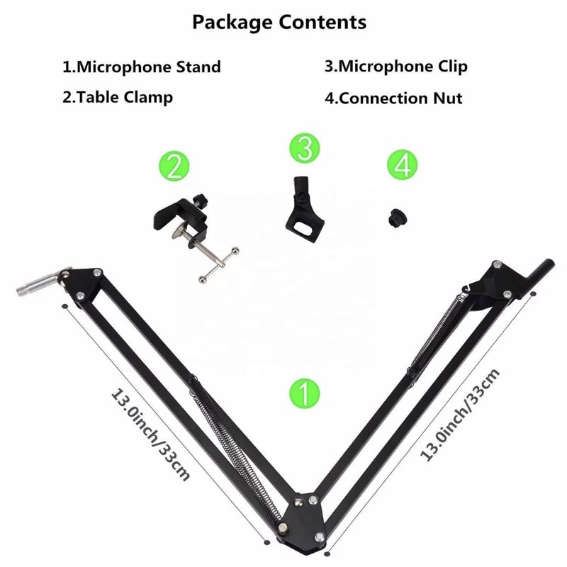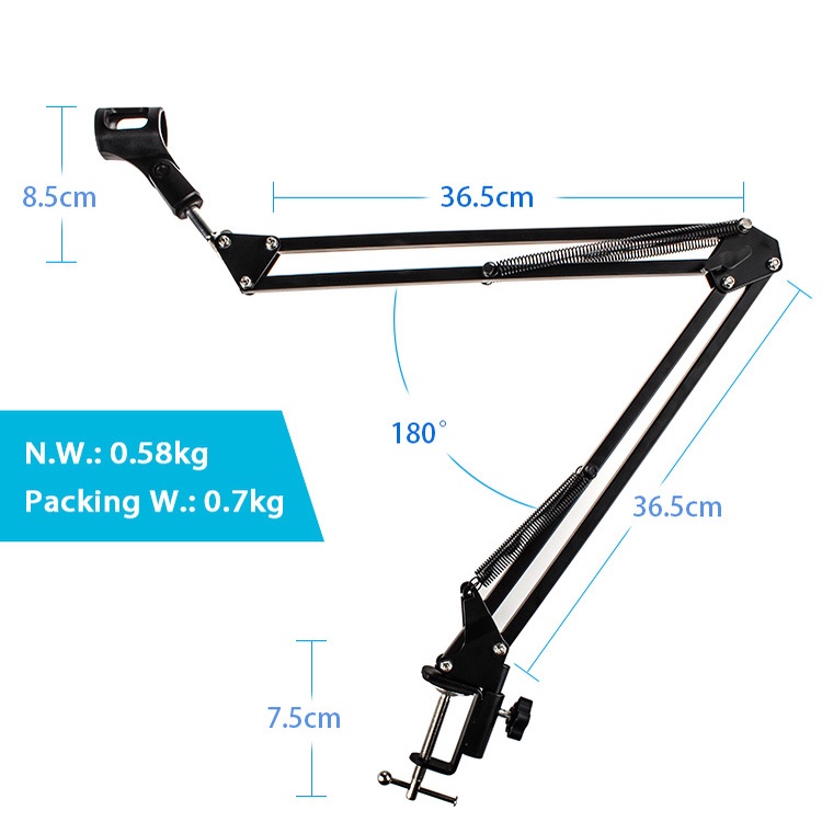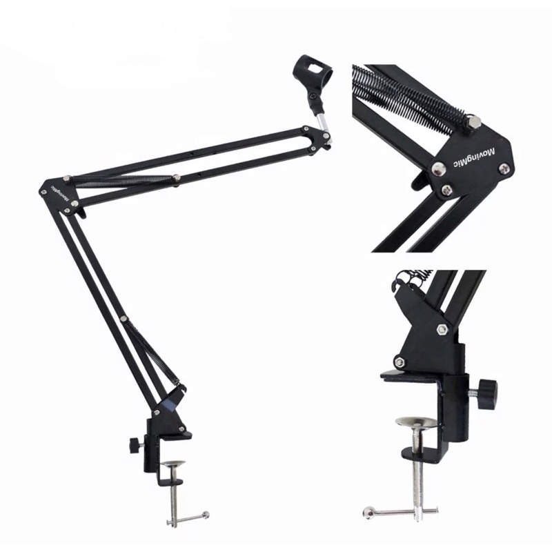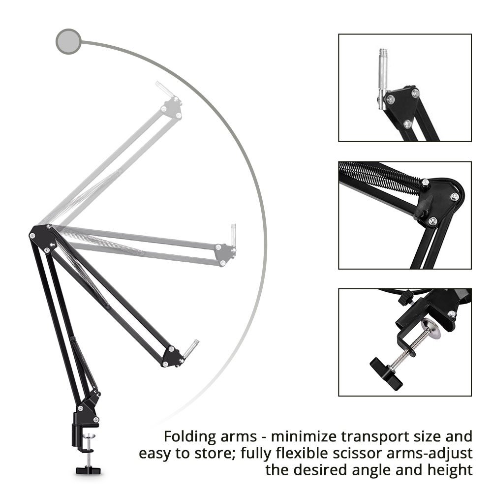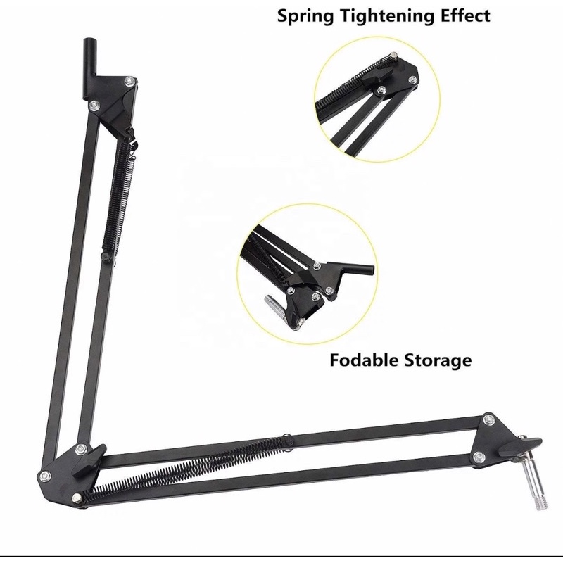 Black Suspension Scissor Angle Mic Stand With Swivel Microphone Boom Arm For Keyboard Broadcasting
