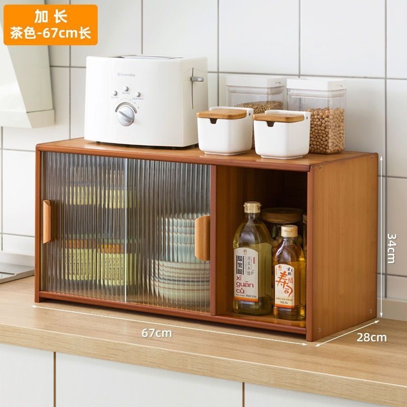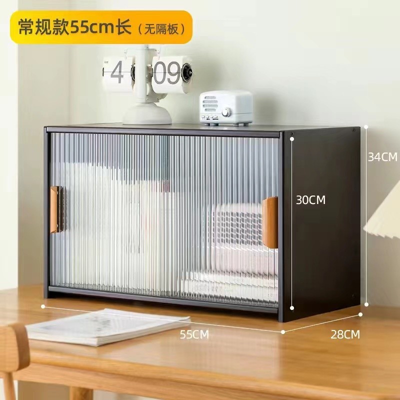 Black Table Shelf Table Top Cabinet Desktop Organiser Book Shelf with Transparent Sliding Door Home Kitchen Shelf Condiment Rack Small Storage Cabinet