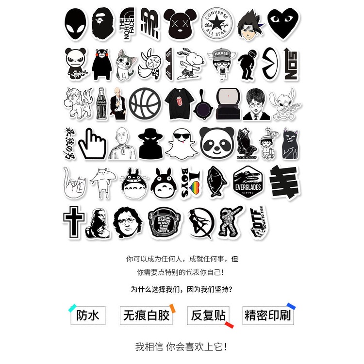 Black and white cartoon sticker set for decoration, mobile phone case, laptop, travel bag, unique waterproof sticker