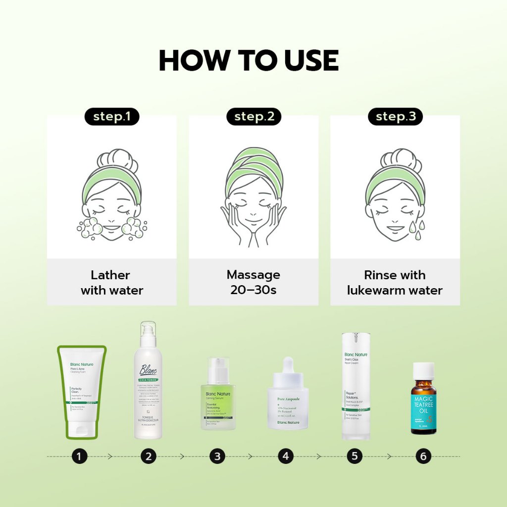 Blanc Nature Official Acne Pimple Cleanser 150ml Orgarnic Green tea Salicylic Acid Acne Treatment