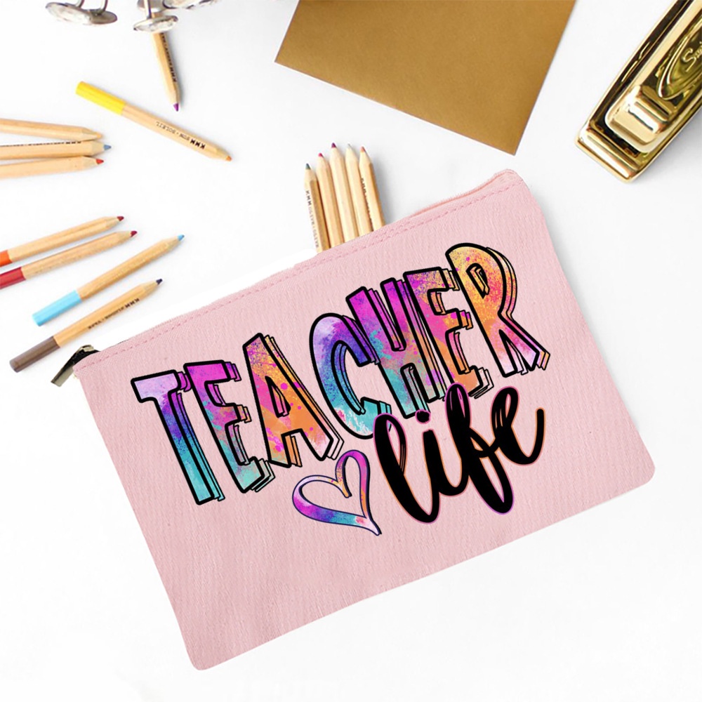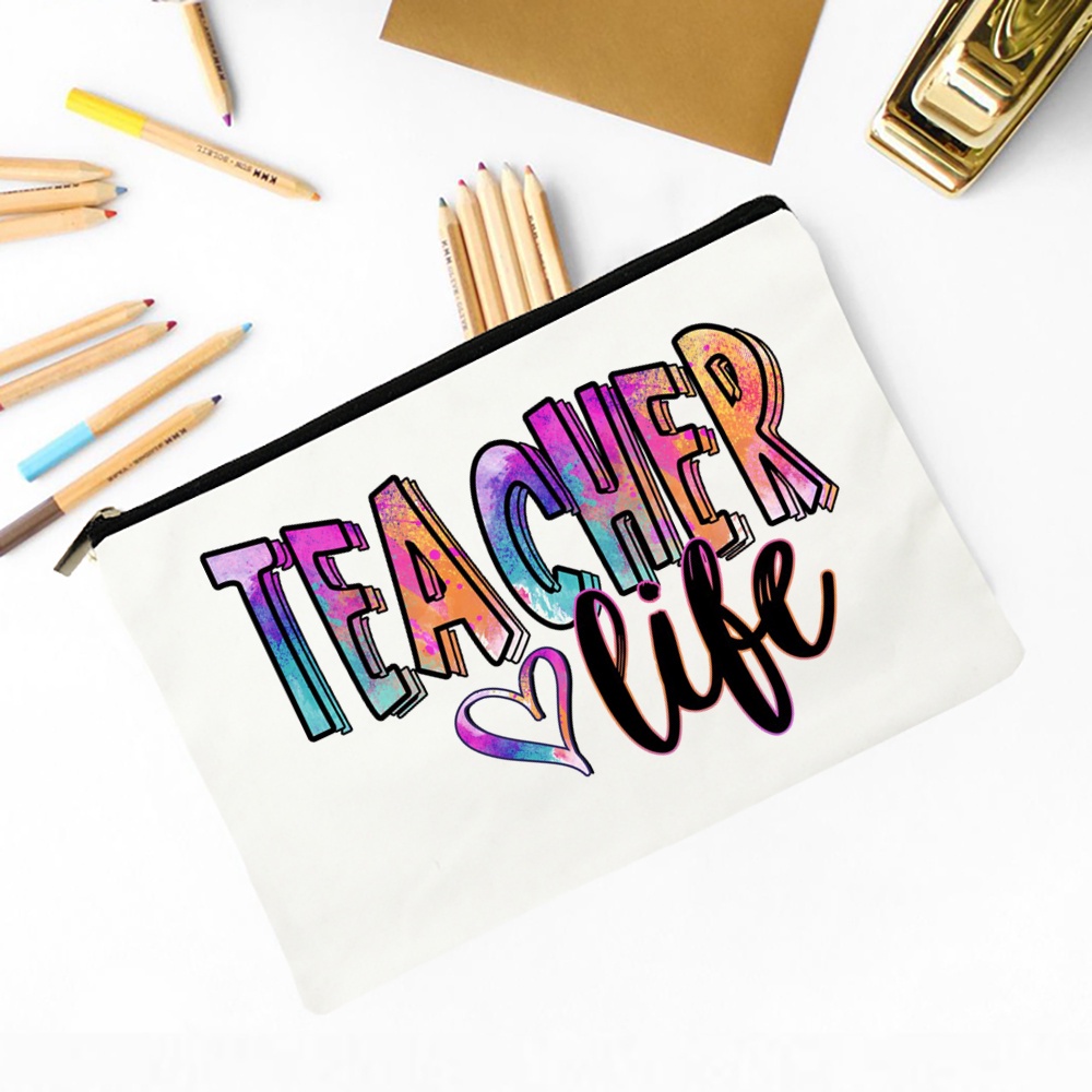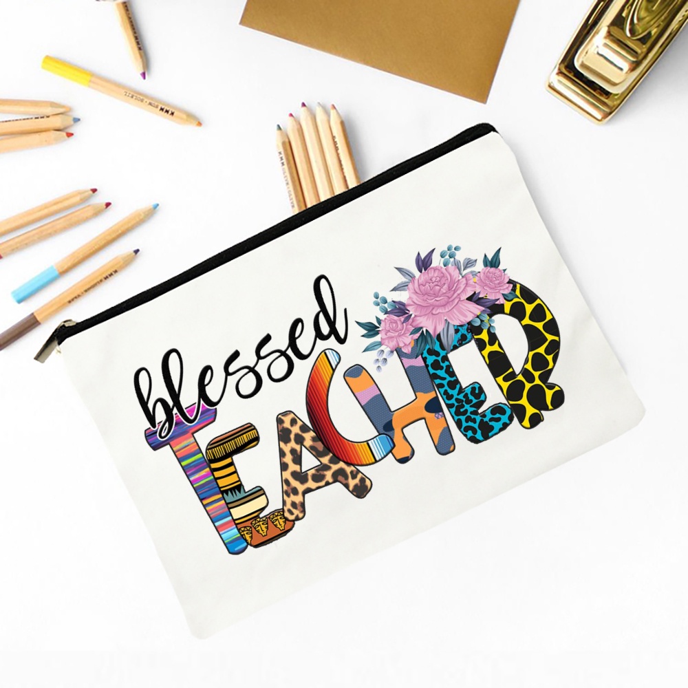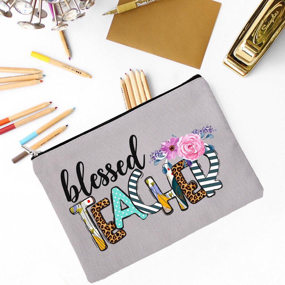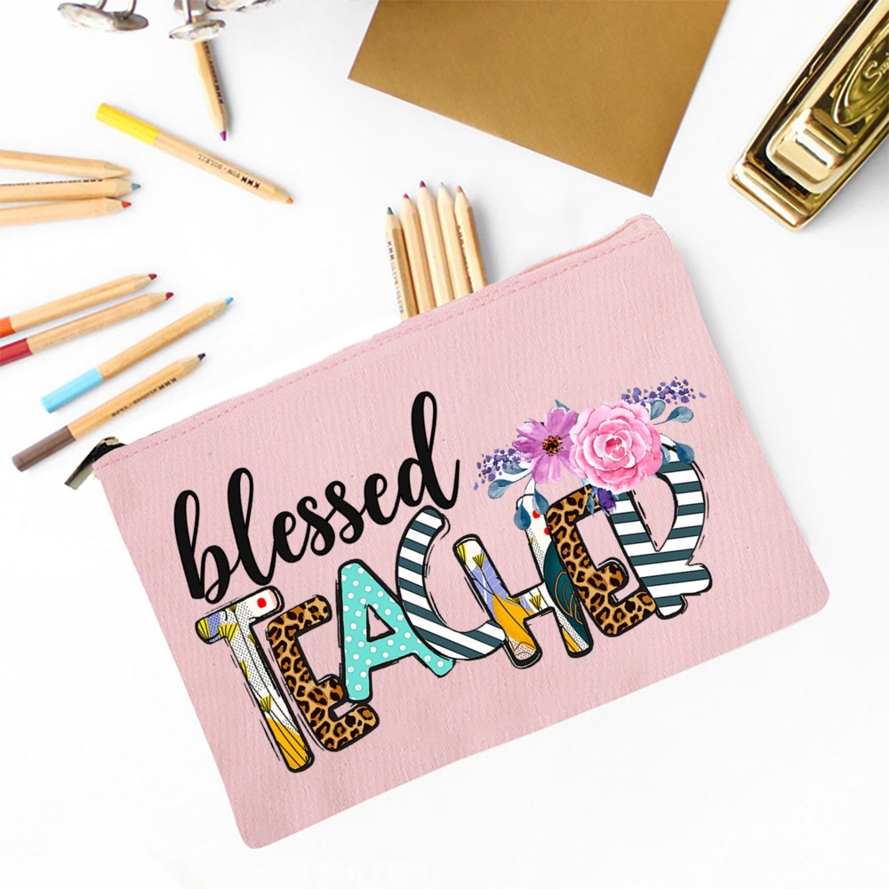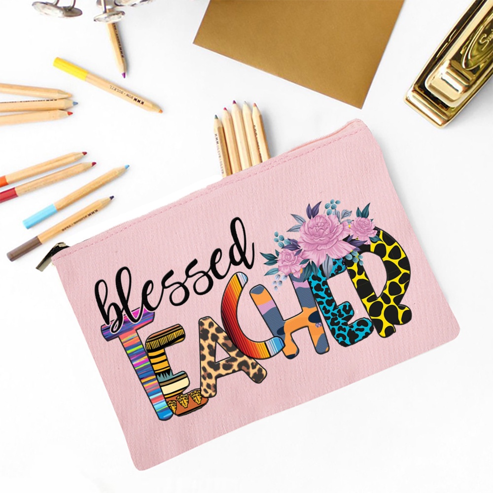 Blessed Teacher Print Ladies Cosmetic Bag Travel Storage Box Pencil Bag Women's Wash Bag School Teacher's Day Gift
