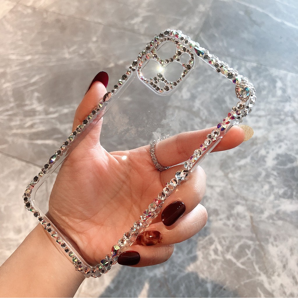 Bling Rhinestone Gem Diamond Case For iPhone 17 16 15 14 13 12 11 Pro Max 16 Plus Casing Glitter Camera Protection Soft Clear Crystal Cover