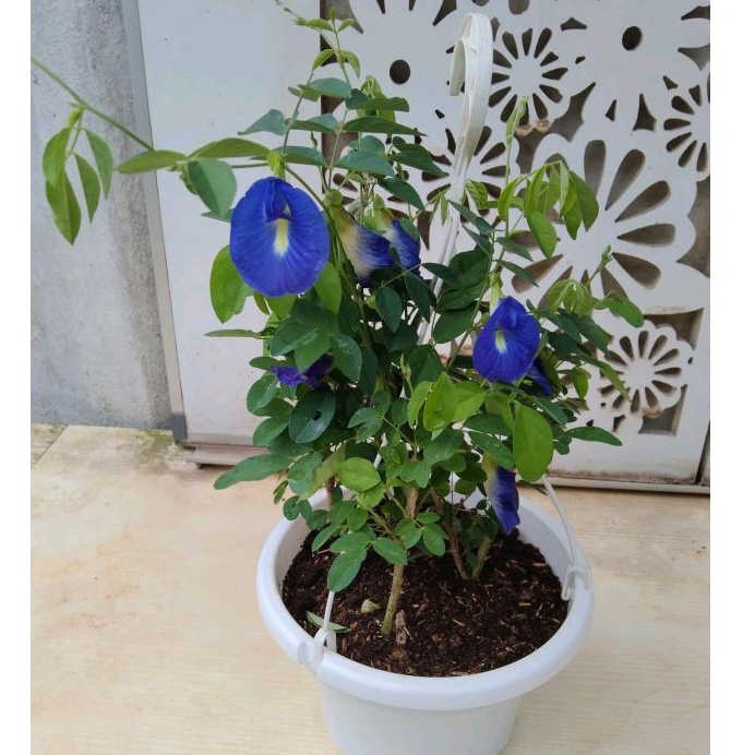 Blue pea flower plant in white hanging pot (8-9 inches pot)