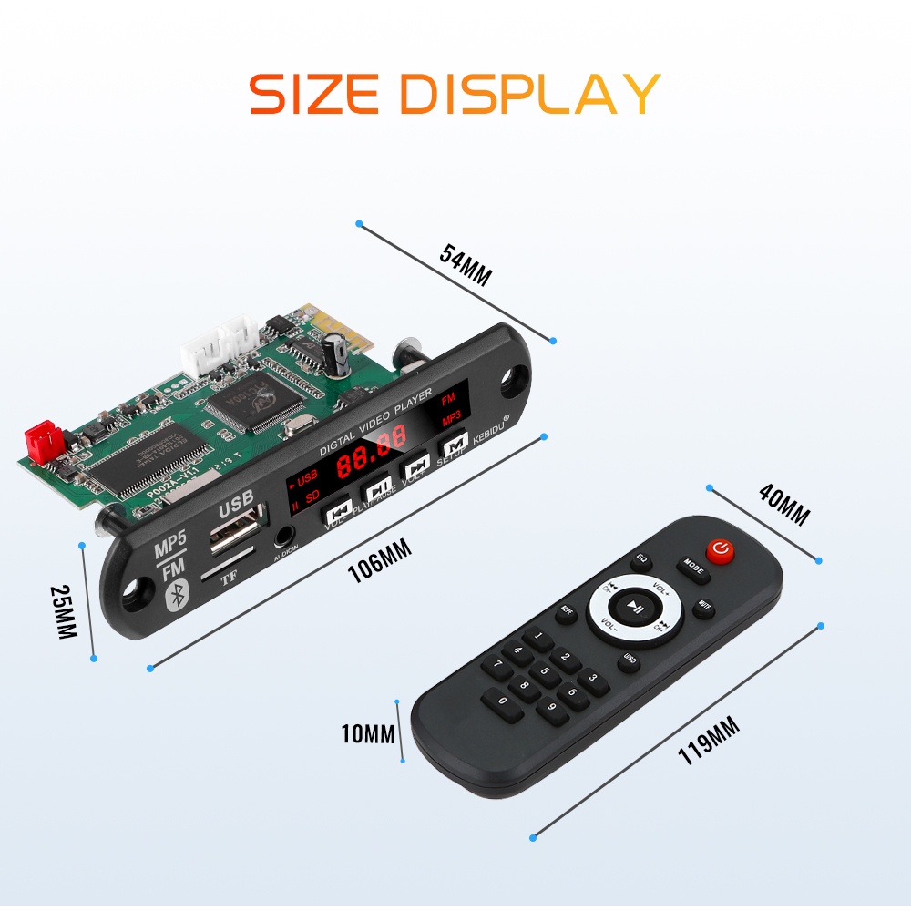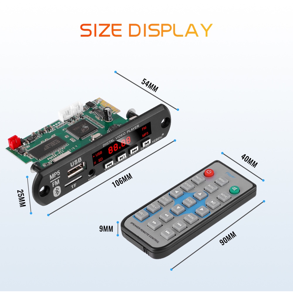 Bluetooth MP3 MP5 Decoder Board with Remote Control DC 5V to12V Car Audio Kit Bluetooth 5.0 USB TF FM Radio Video Player Module