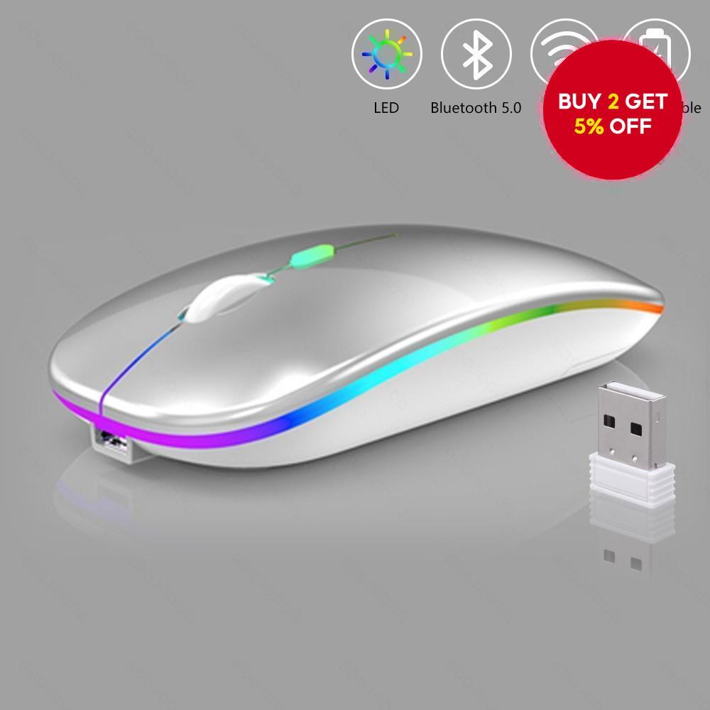 Bluetooth Mouse Wireless Dual-Mode RGB Silent Mouse DPI Adjustment Ergonomic Design for PC Laptop
