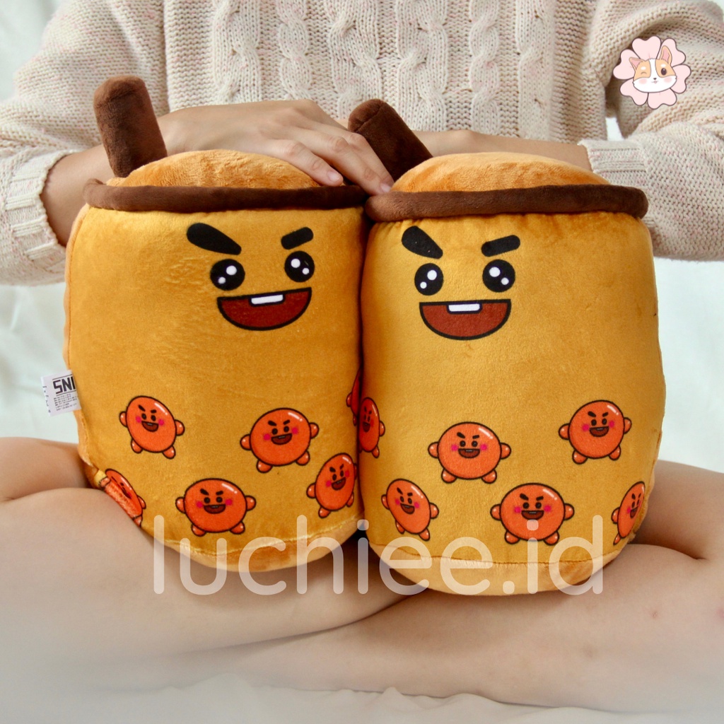 BOBA SHOOKY BT21 BTS 30CM DOLL VIRAL BUBBLE MILK TEA/, SOFT YELVO MATERIAL DOLL, SNI