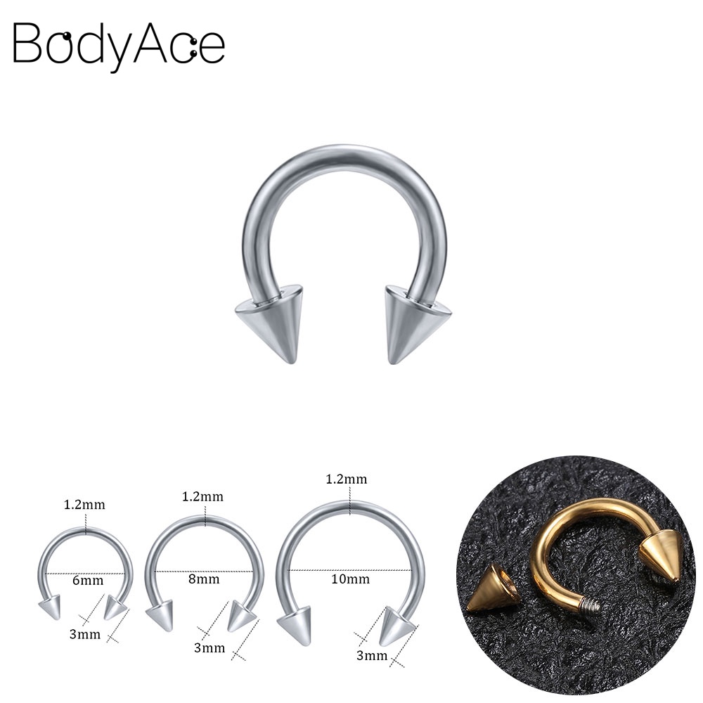 Bodyace 1 Pc Stainless Steel Nose Ring Labret Piercings Spike Septum Smiley Rings Rook Tragus Helix Piercings