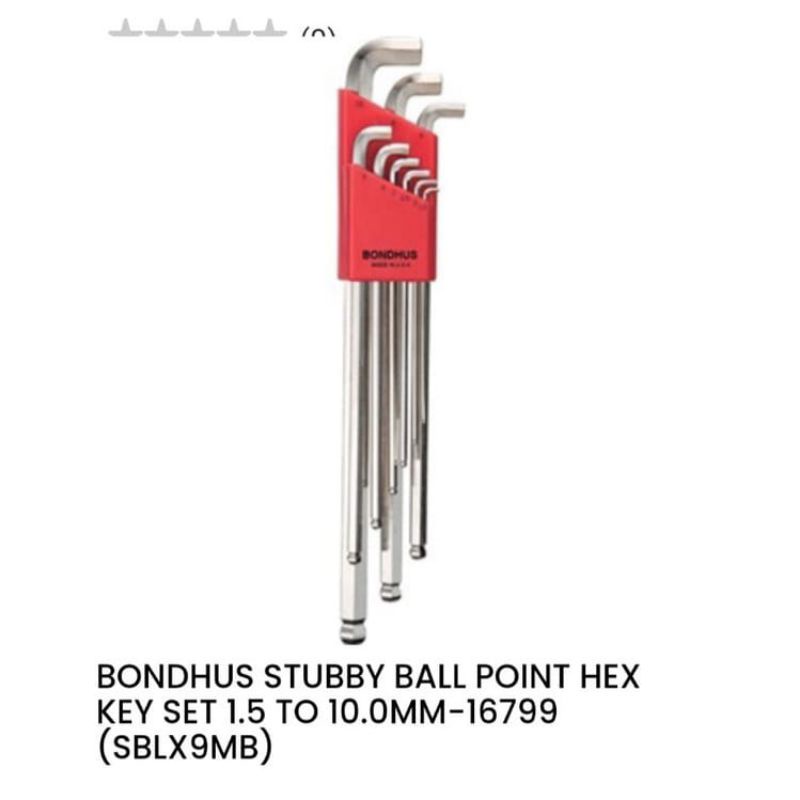 Bondhus Stubby Ball Point Metric Hex Key Set