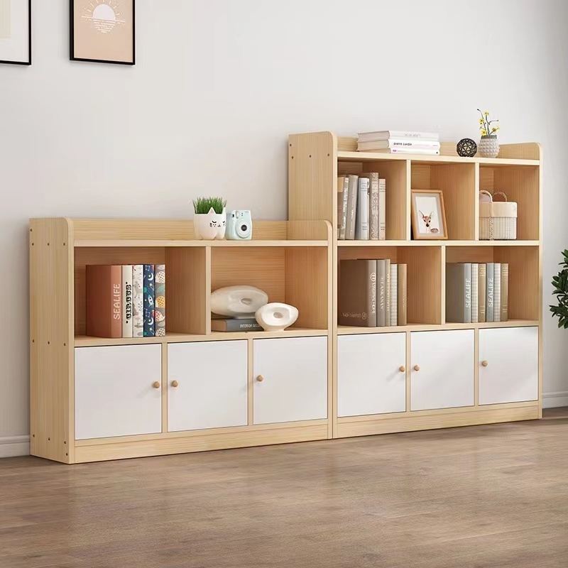 Bookcase storage cabinet integrated free combination grid cabinet with door simple wooden low bookshelf storage rack