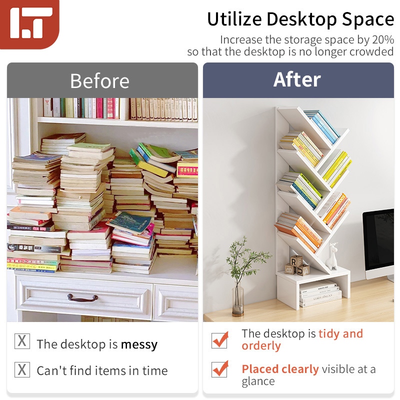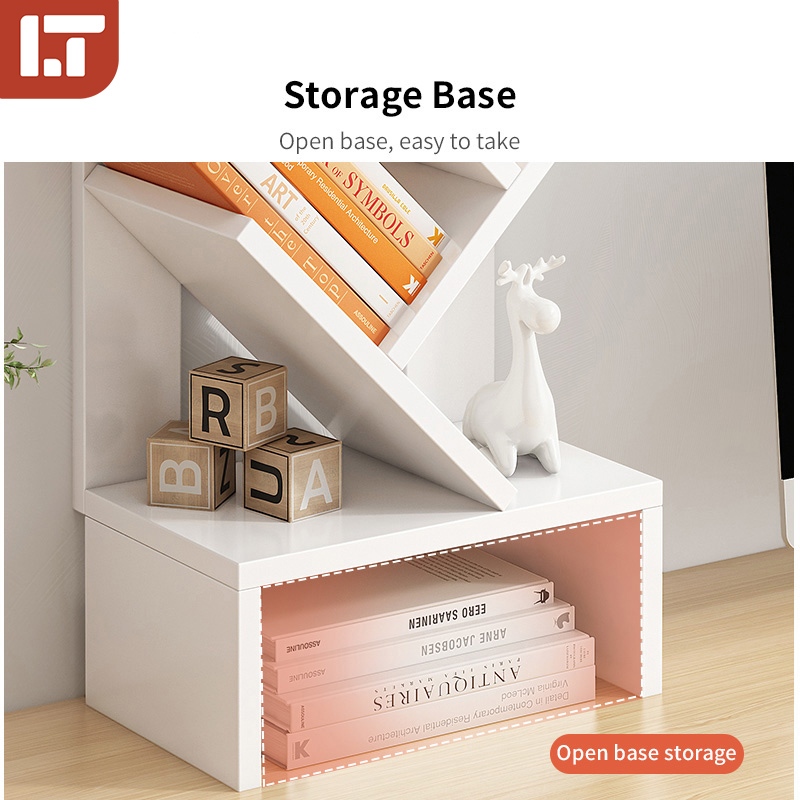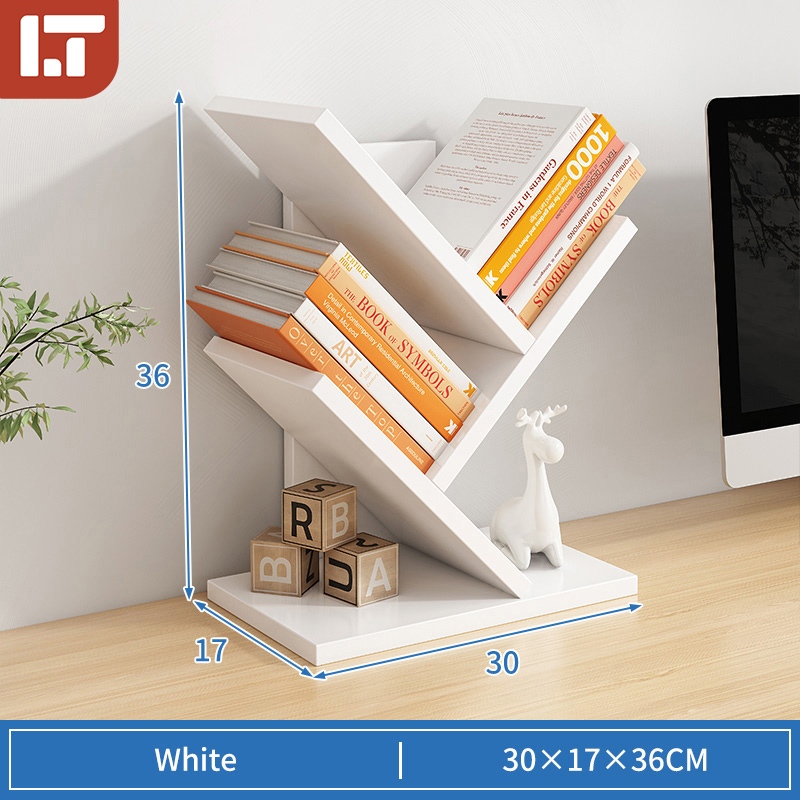 Bookshelf 3 Tier/5 Tier Tree Shape Tabletop Book Rack Desktop Organizer Bookcase Storage Rack Modern Style Home Office Organizer Student Storage Shelf