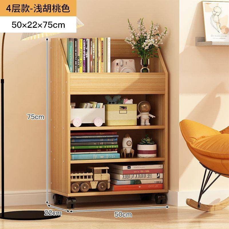 Bookshelf floor shelf Movable wooden bookcase with wheel table under the table book document storage cabinet trolley