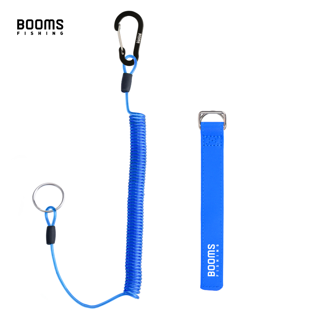 Booms Fishing T01 2M Fishing Coiled Lanyards with Rod Tie Beltb Fishing Lanyard for Boating Ropes with Camping Carabiner Tools