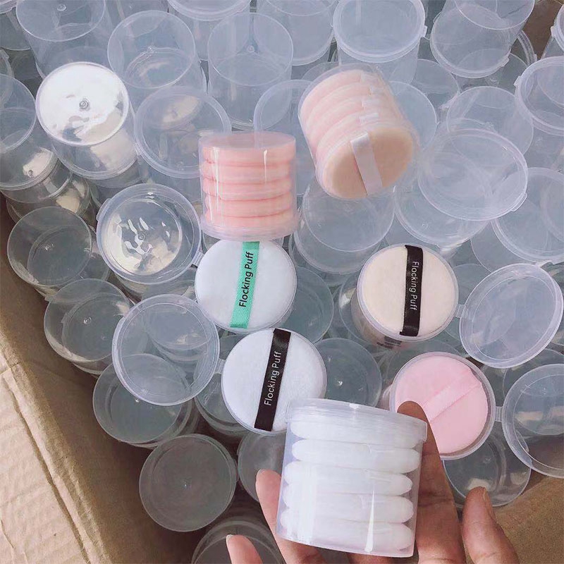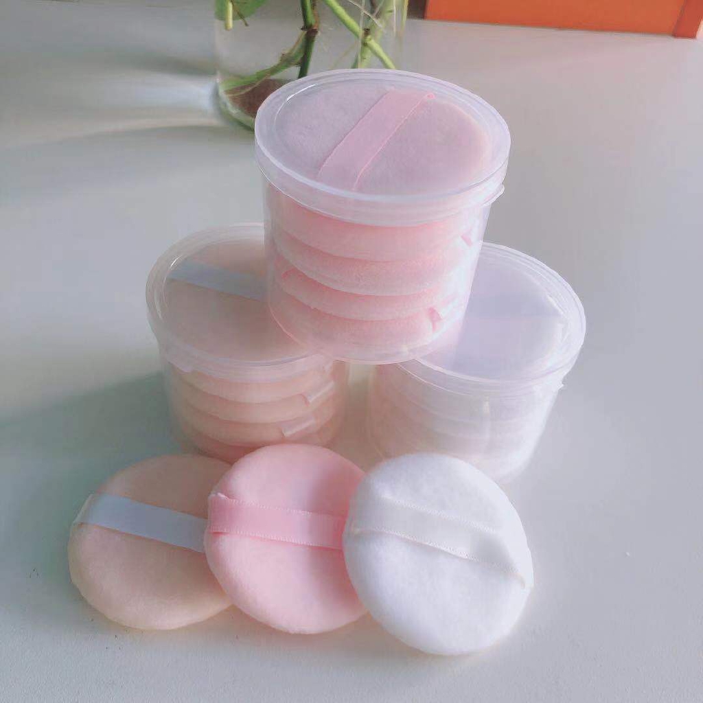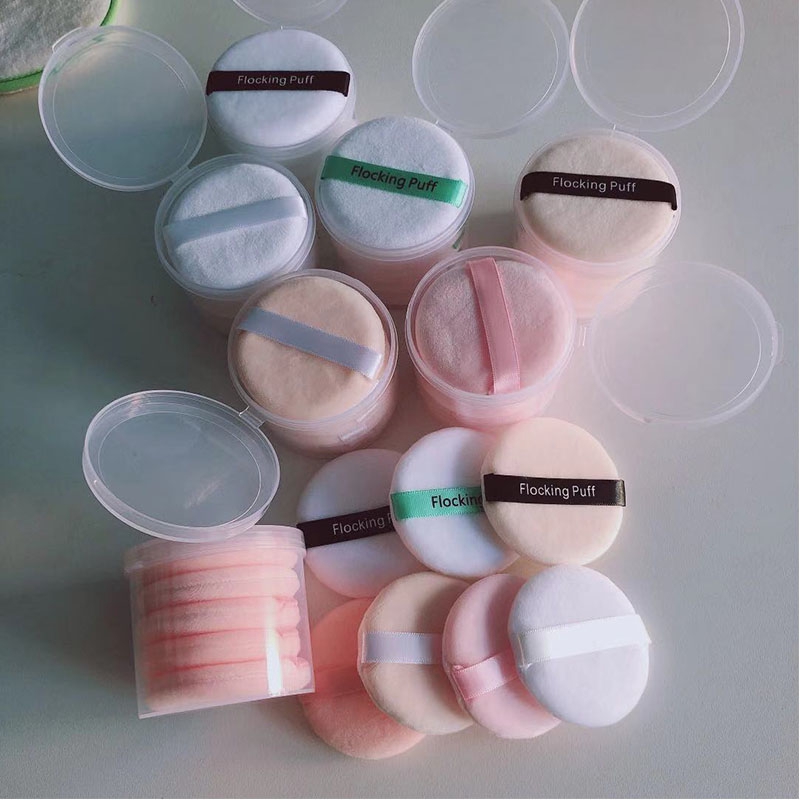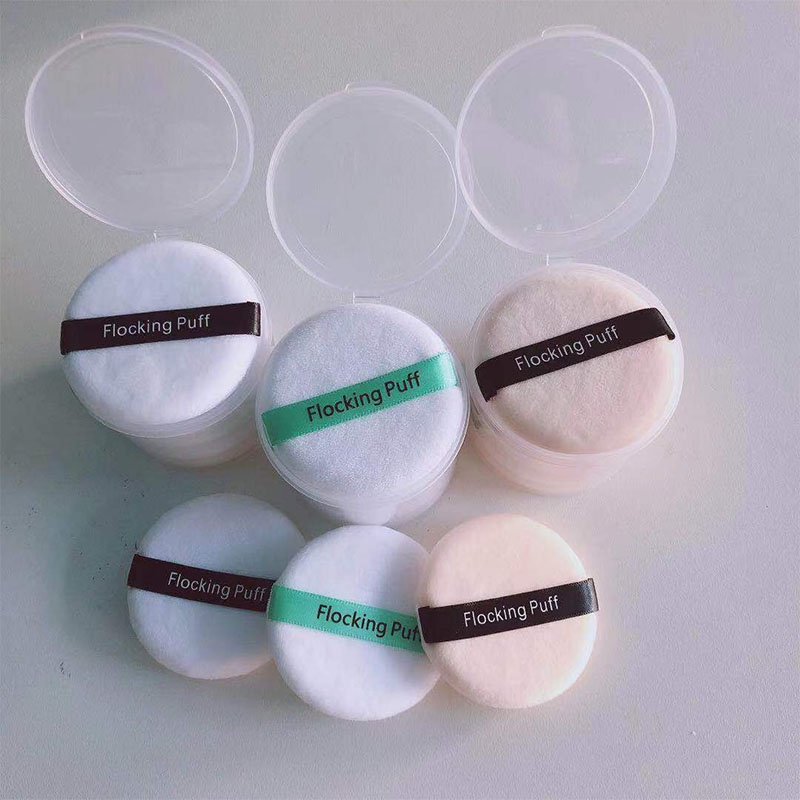 Box Box Loose Powder Loose Powder Setting Powder Puff Fine Flocking Powder Puff Round Ribbon Hook Hand Powder Puff Color Style Random (5pcs Pack)