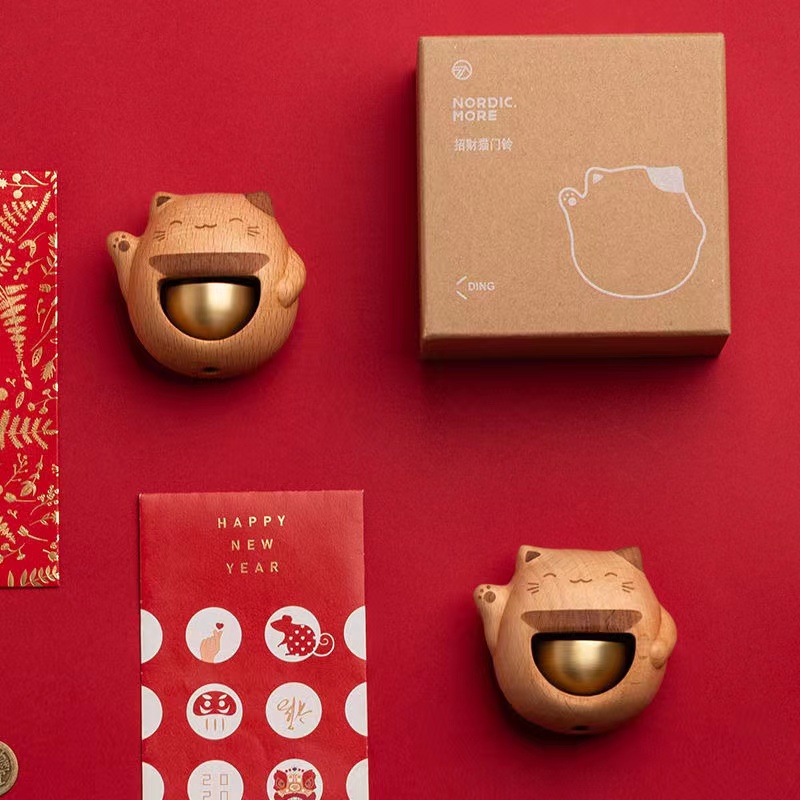 Brass solid wood wind chimes lucky cat doorbell opening housewarming gift magnetic wind bell refrigerator sticker