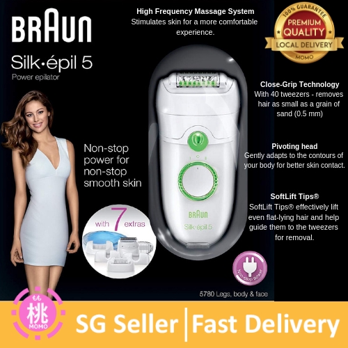 Braun Epilator Silk IPL 5780, Hair Removal with 7 Extras Including Shaver Head and Trimmer Cap