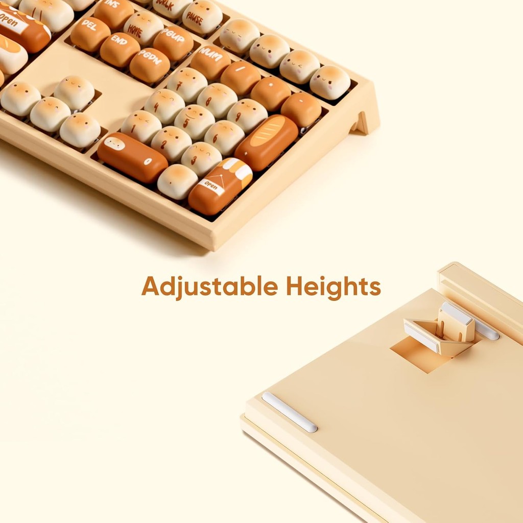 Bread Paradise Hot-Swappable Wireless Mechanical Keyboard Keycap Set Cute Mantou MOG Profile Three Modes RGB Gaming Bluetooth Keyboard With Pre Lubed Piano Switch Christmas Gift
