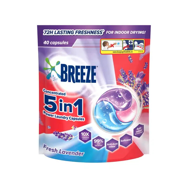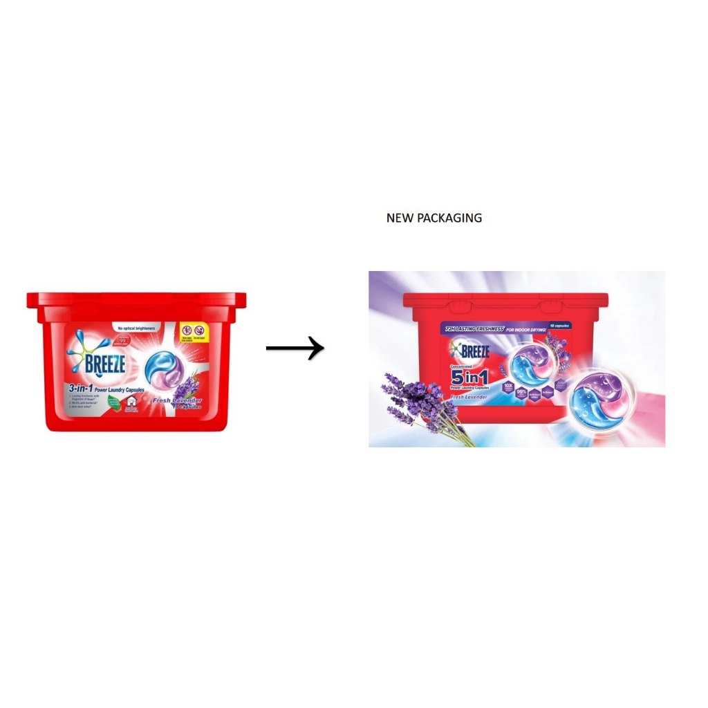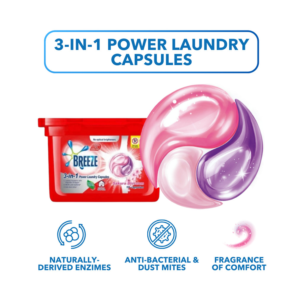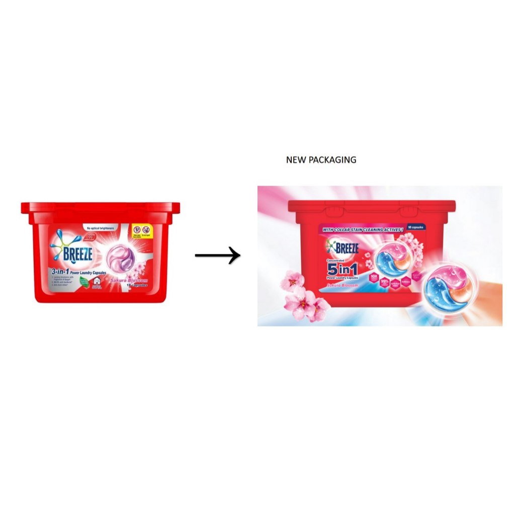 Breeze Laundry Capsules 3in1 5in1 - 18pcs/40pcs, Power Clean, Stain Removal, Long-Lasting Freshness