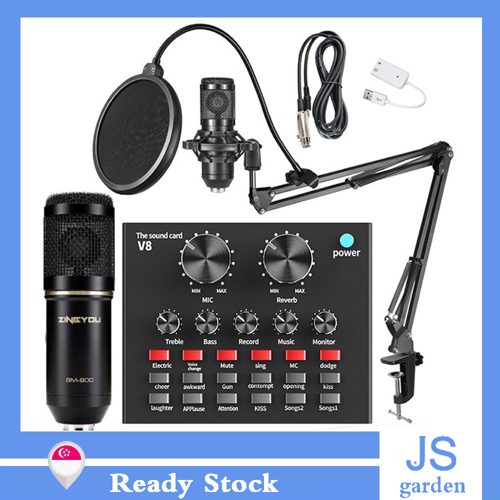 BM800 V8 Set Mic Professional Condenser Studio Recording Live Microphone Phone Computer