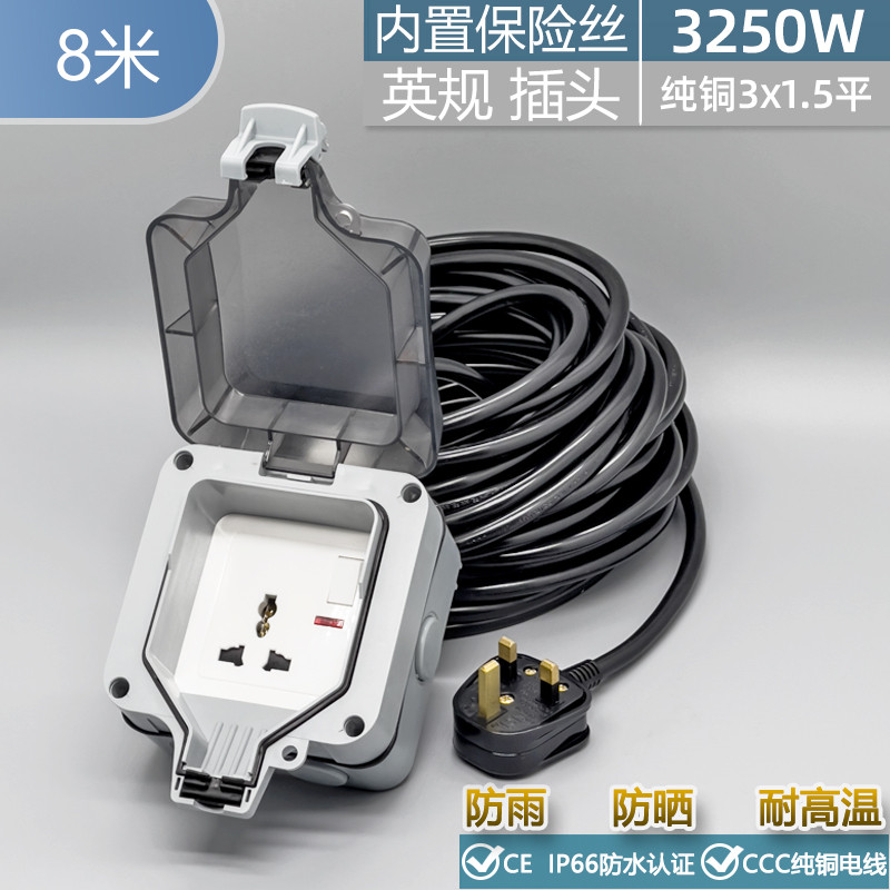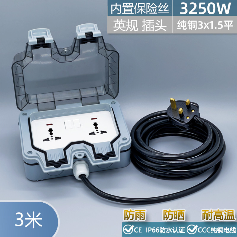 British Standard Hong Kong and Macau Outdoor Waterproof Power Strip Outdoor Power Supply Rainproof Socket Box Circuit Breaker Extension Cord