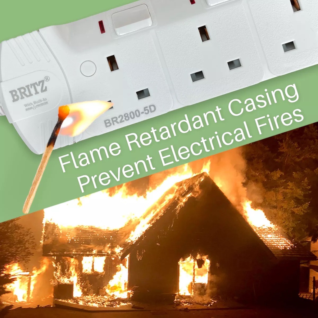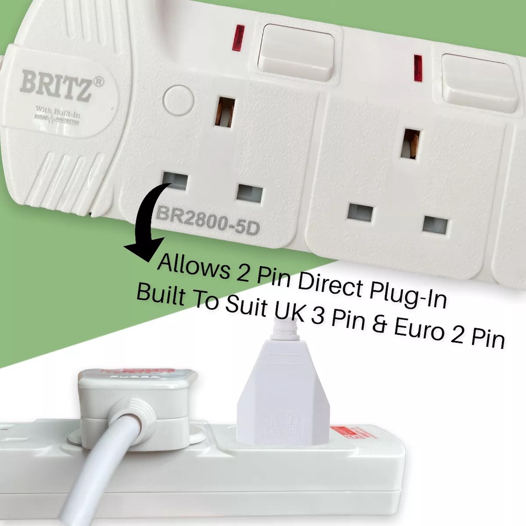 Britz 3M Cable Extension Safety Socket Cable 2,3,4,5,6 Way / Surge Protection / 2 Pin Friendly