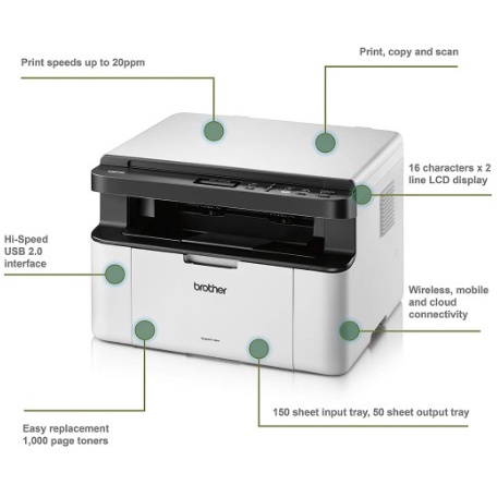 Brother DCP--1610W Wireless Monochrome A4 Laser Jet Printer Print / Copy / Scan Warranty by Brother Singapore