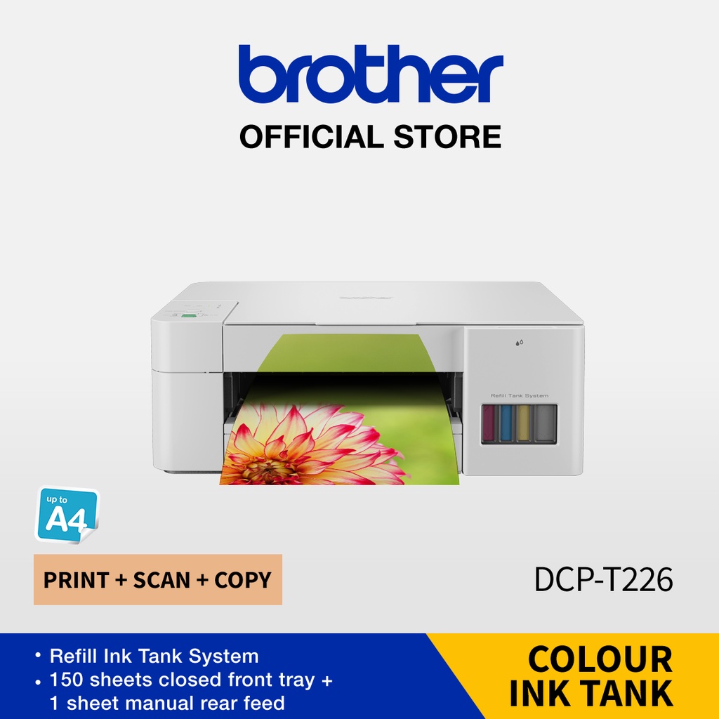 Brother DCP-T226 A4 3-in-1 Colour Ink Tank Printer | Refill Ink Tank | Print, Scan, Copy