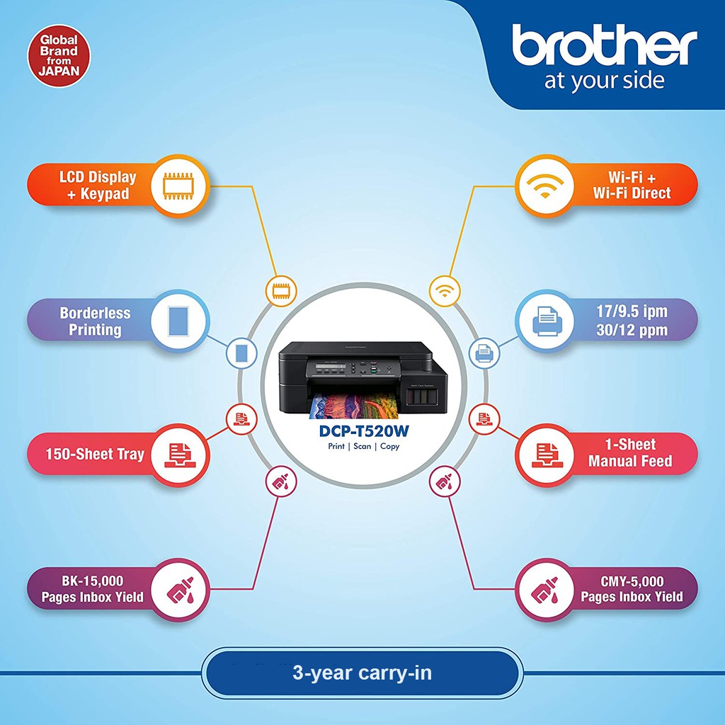 Brother DCP-T520W All-in One Ink Tank Refill System Printer with Built-in-Wireless Technology Replacement of DCP-T510