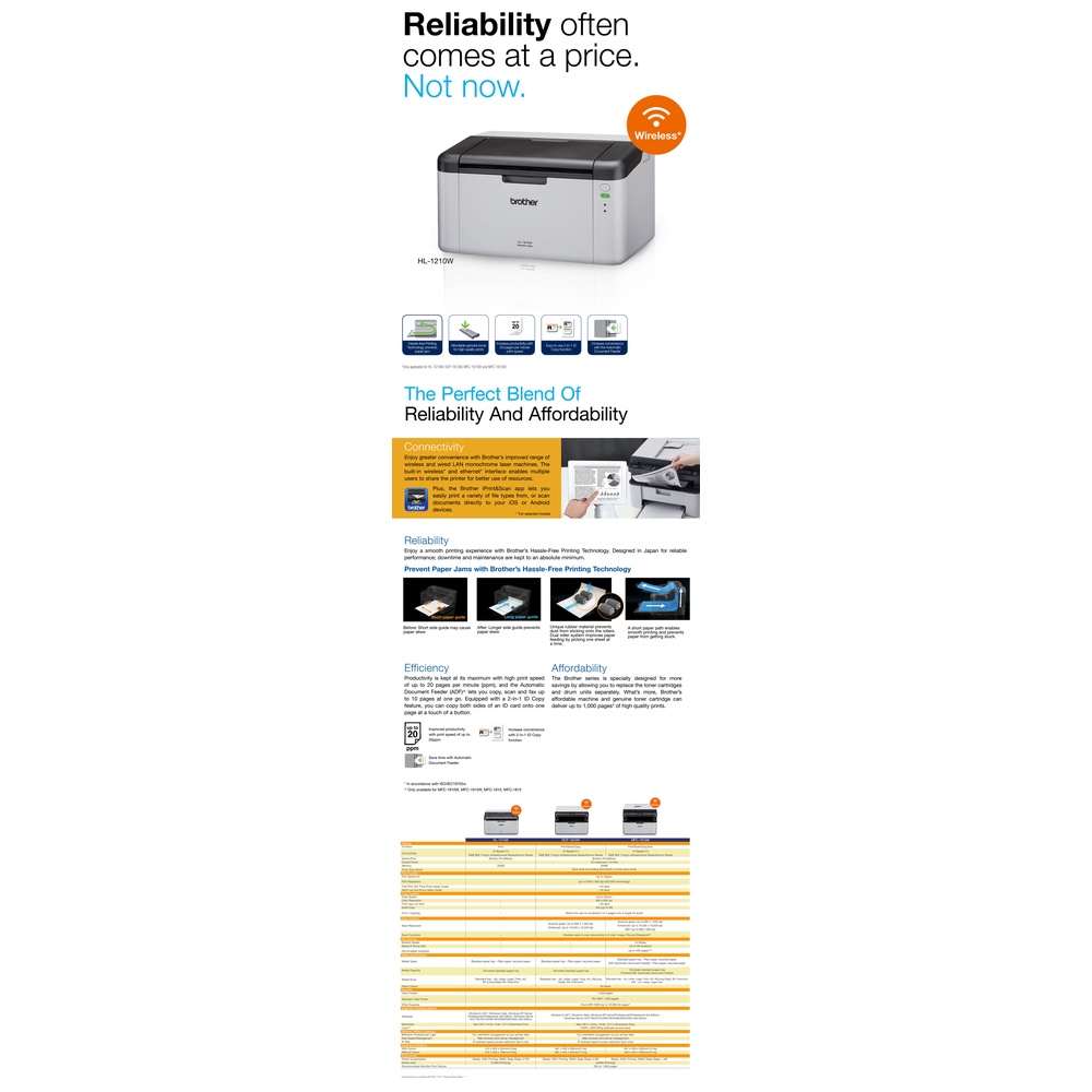 Brother HL-1210W Wireless Mono Laser Printer | Compact