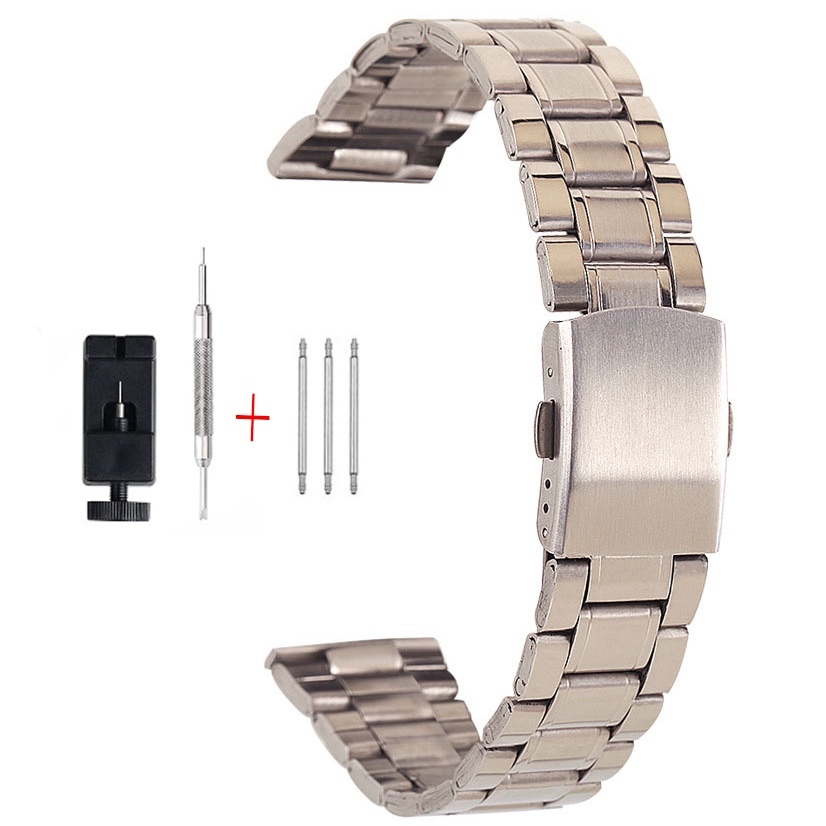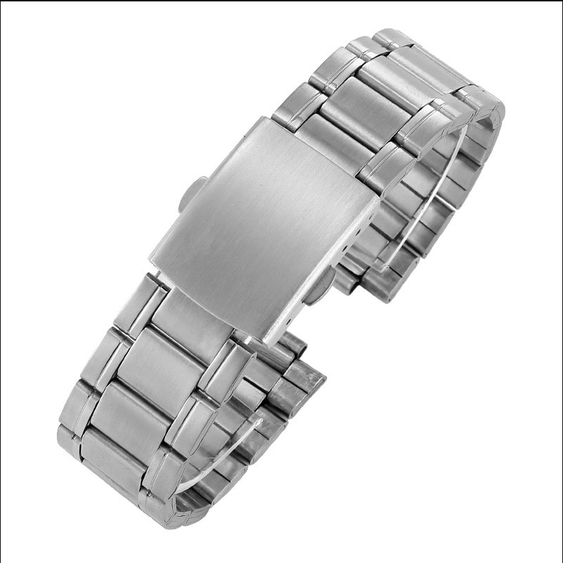 Brushed Stainless Steel Watch Band 18mm/20mm/22mm/24mm Metal Replacement Bracelet Men Women Black/Silver WristBand