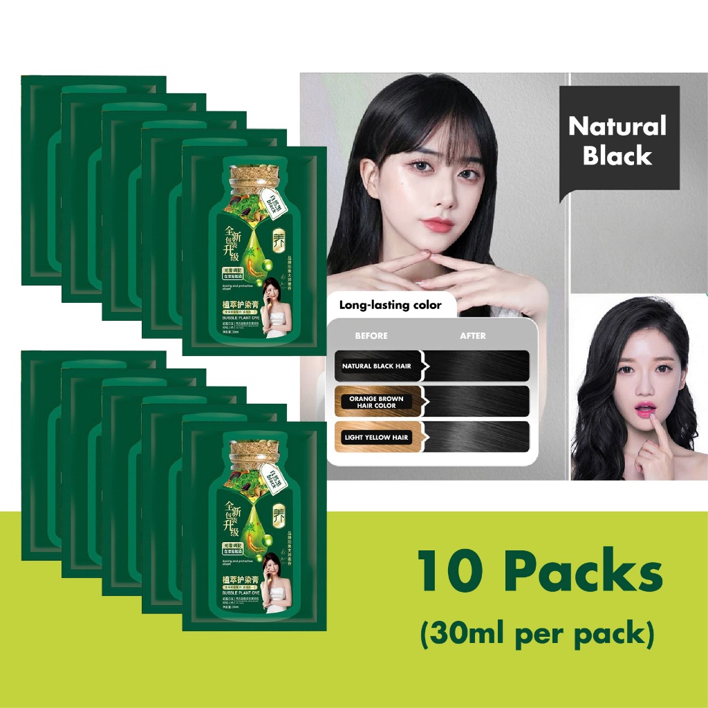 Bubble Plant Hair Dye Natural Gentle Long-Lasting Black Hair Color Plant-Based Hair Dye with Scalp Protection Hair Care