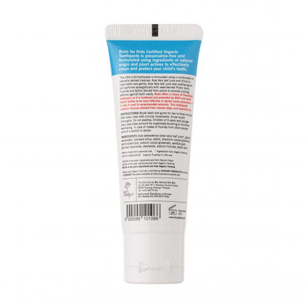 Buds Oral Care Organics Children's Toothpaste With Fluoride (3-12 years old) 50ml - Strawberry