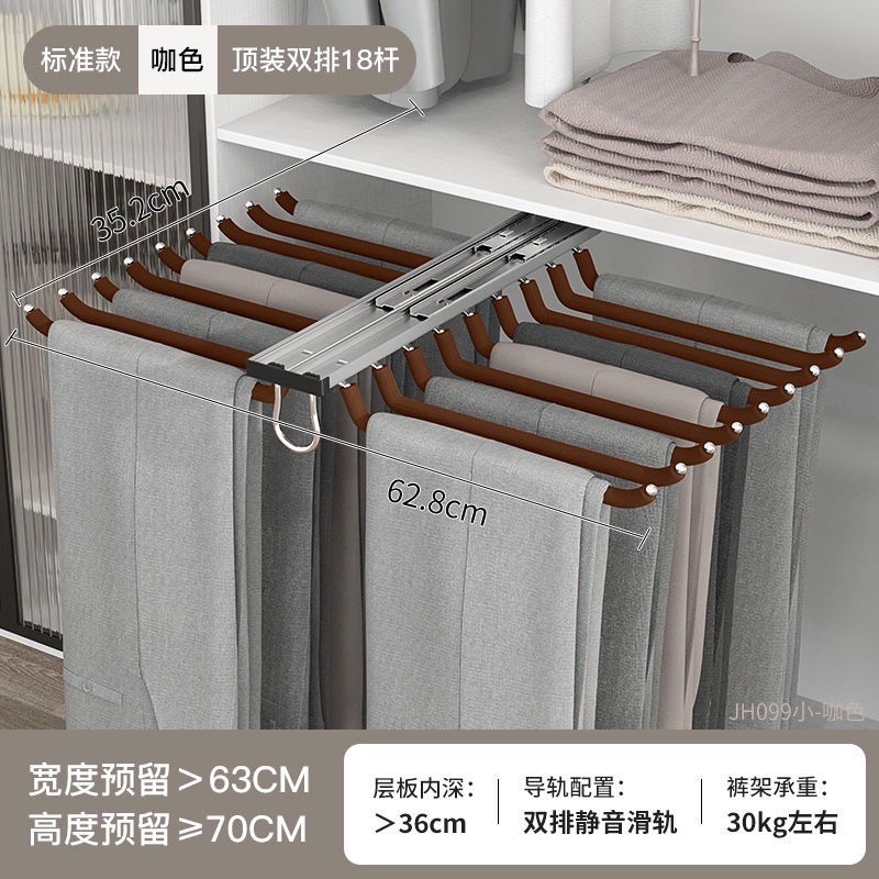 Built-in Pull-Out Trouser RackWardrobe Telescopic Sliding Trouser RackTop Mounted Pull-Out Double Row Trouser Racks