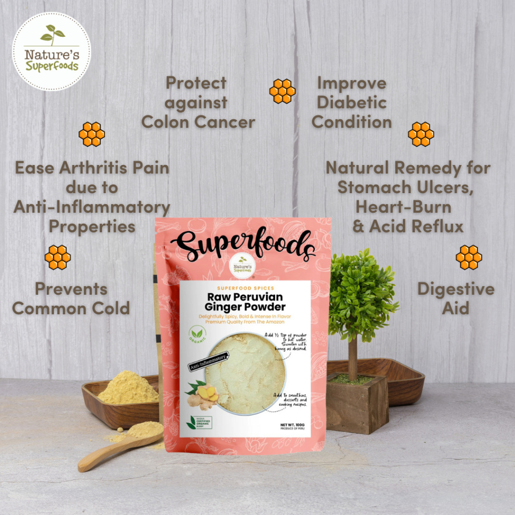Bundle Deal: Nature's Superfoods Organic Raw Peruvian Ginger Powder Spice 100g x 2 l Delightfully Fragrant, Spicy