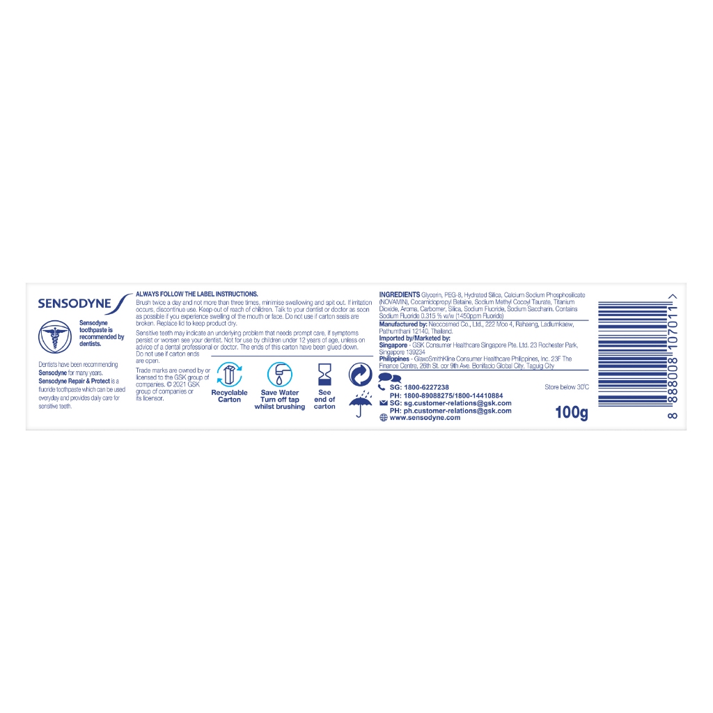 [Bundle of 1/4] Sensodyne Sensitive Repair and Protect Whitening Toothpaste (100g)