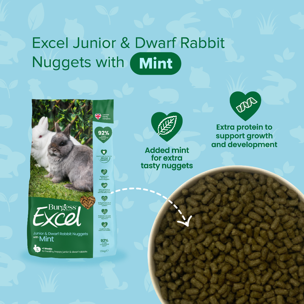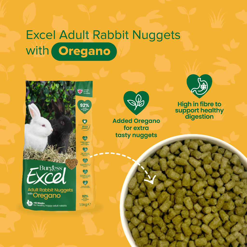 Burgess Excel Rabbit Nuggets 1.5kg | Vet-Recommended Tasty Rabbit Pellets, High-Fiber Food for Digestion & Dental