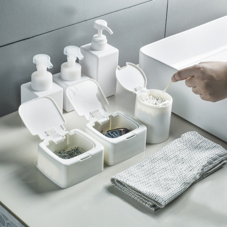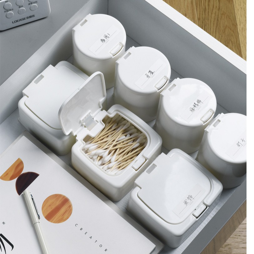 Button type mini storage box with lid plastic office desktop storage bucket cotton swab box dustproof finishing box pop-up storage box