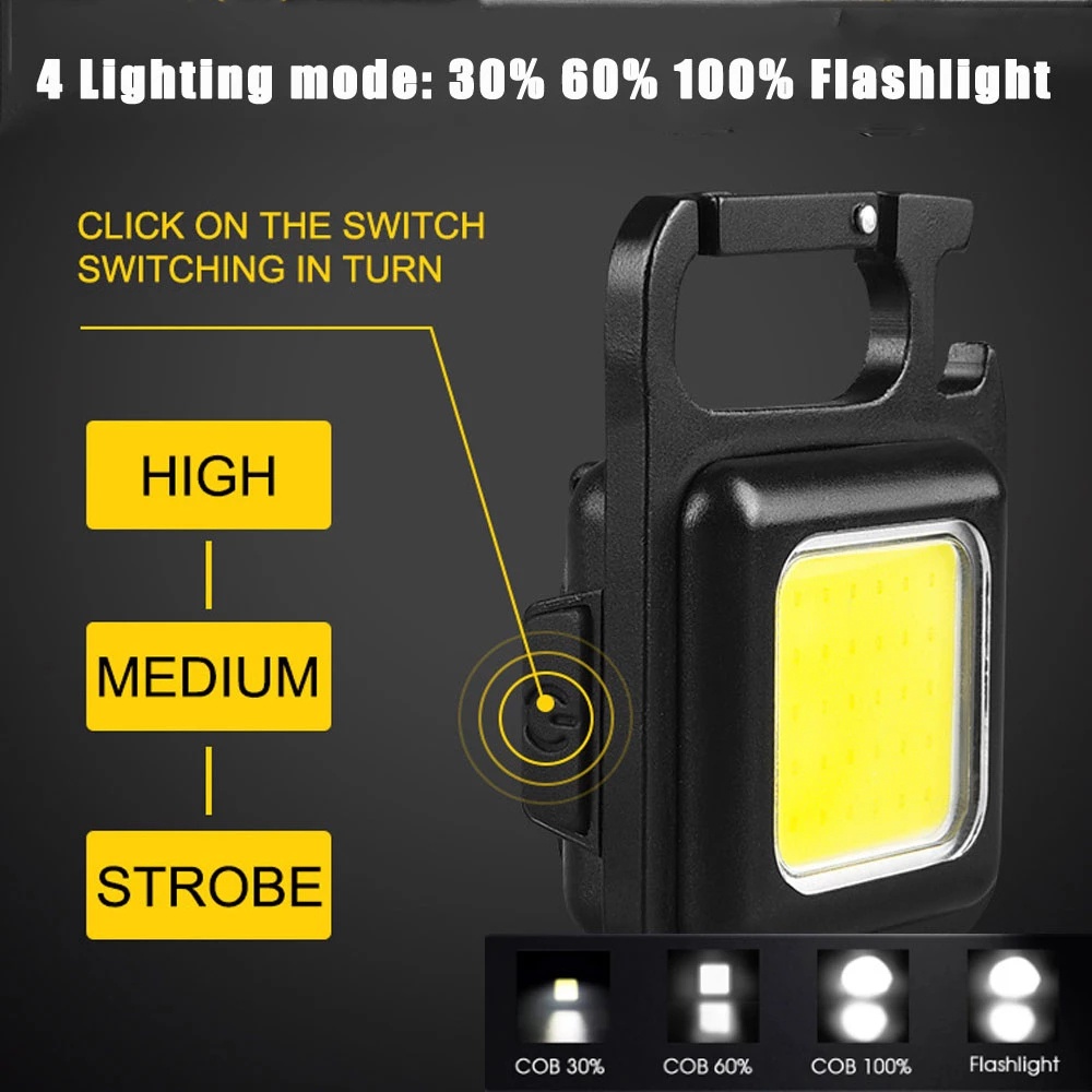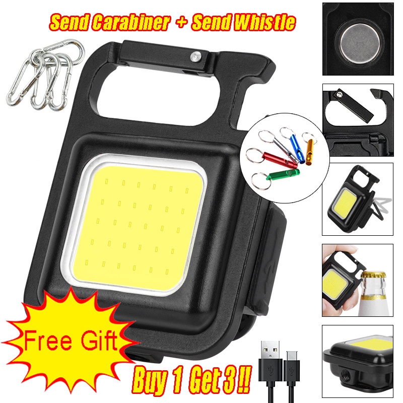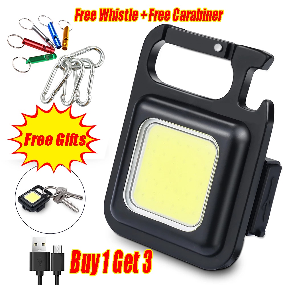 Buy 1 Get 3(Keychain Light+Cable+Whistle+Carabiner) Mini LED Torch/ Portable USB Rechargeable Work Light /800 Lumens Bright Keychain Light Small Pocket Flashlights