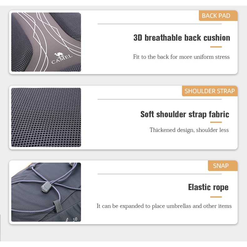 CAMEL CROWN Mountaineering bag 30L outdoor waterproof backpack large-capacity hiking backpack backpack for men and women leisure sports travel