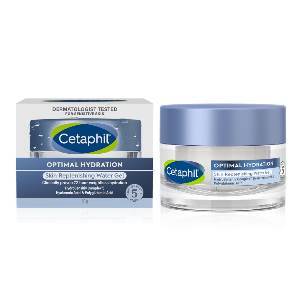 CETAPHIL Optimal Hydration Skin Replenishing Water Gel 48g [For Dry & Sensitive Skin], With Hyaluronic Acid, Vitamin B